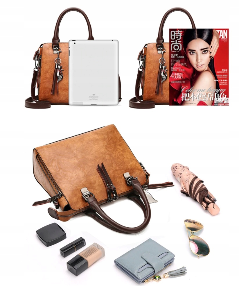 РОСКОШНАЯ ЖЕНСКАЯ КОЖАНАЯ СУМКА С ДВОЙНОЙ МОЛНИЕЙ