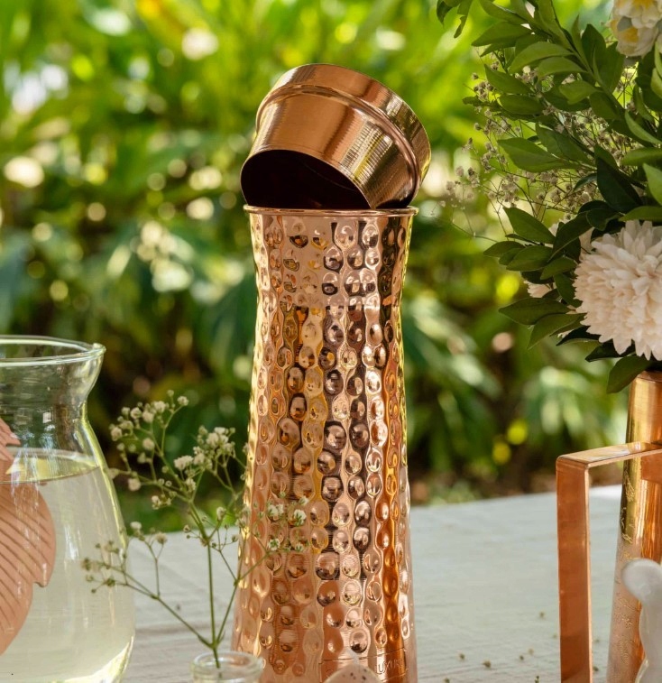 С древних времен Аюрведа выступала за преимущества употребления медной воды. Согласно Аюрведе, если вы храните воду в медной блюде в течение 4-12 часов (предпочтительно на ночь), вода становится естественной щелочкой. Это также оставляет шелковистый гладкий вкус. Заряженная медная вода помогает восстановить баланс Тридоши (Вата, Капха и Питт). В аюрведе эта трансформированная, заживающая вода, взятая из медных сосудов, называется «Тамра Джал» Научные преимущества:
