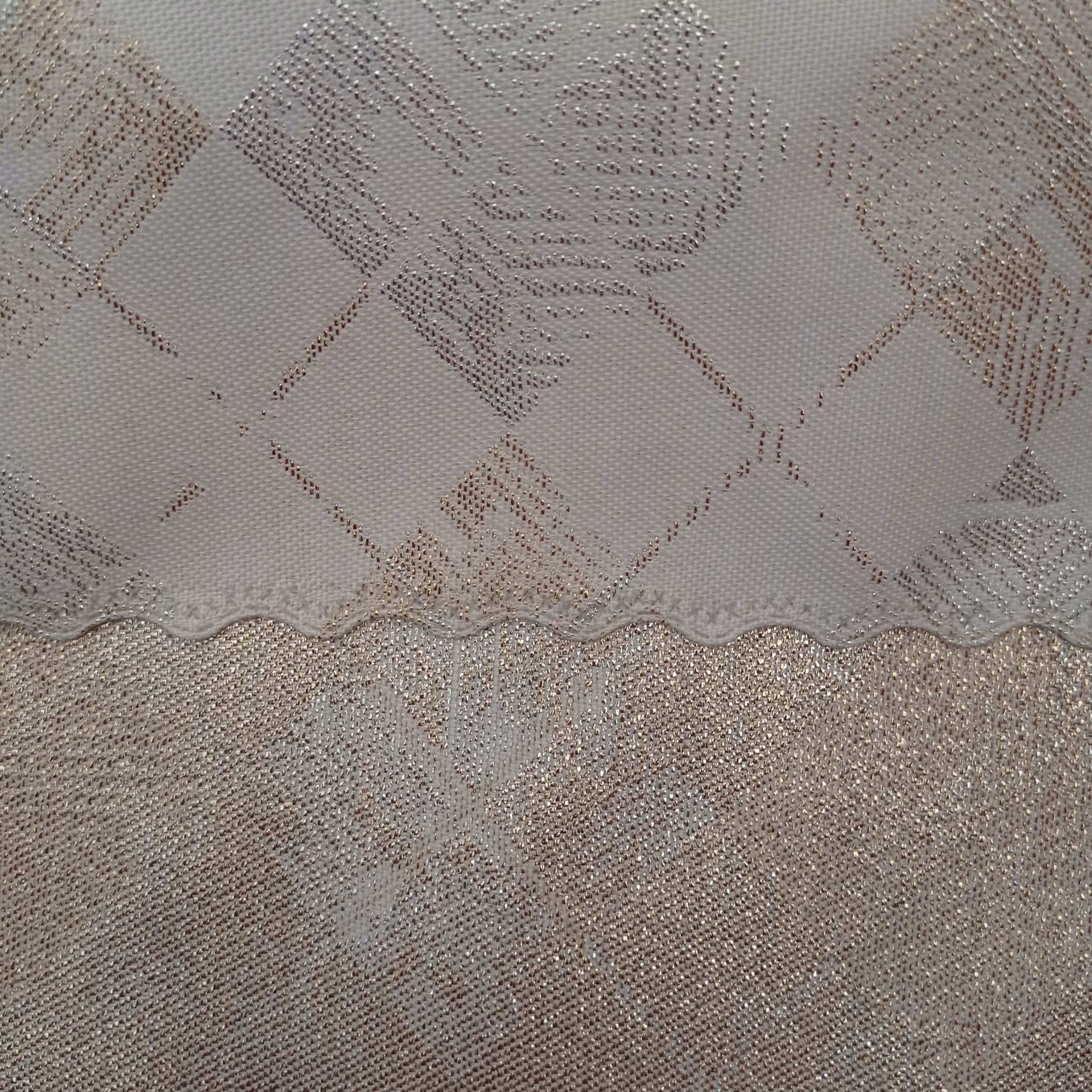 Красивая скатерть экри с блестящими, золотистыми квадратами. аналогичные скатерти, доступные на других аукционах в других цветовых комбинациях (серебро, белое, экри, золото).