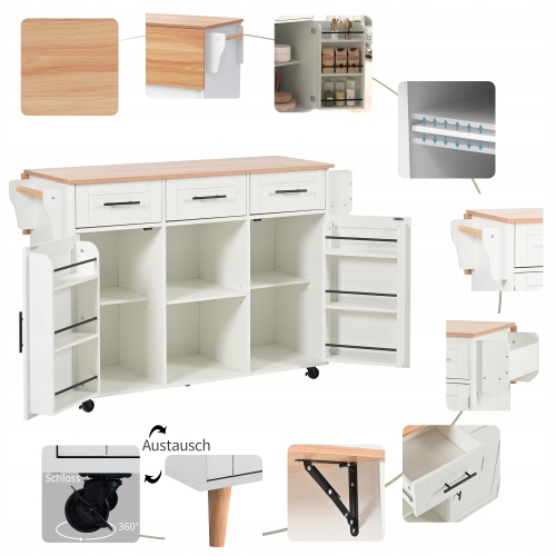 СКЛАДНАЯ ОБЕДЕННАЯ ТЕЛЕЖКА, ДЕРЕВЯННАЯ ВЕРХНЯ, ШКАФ И СМЕННЫЕ НОЖКИ, БЕЛЫЙ