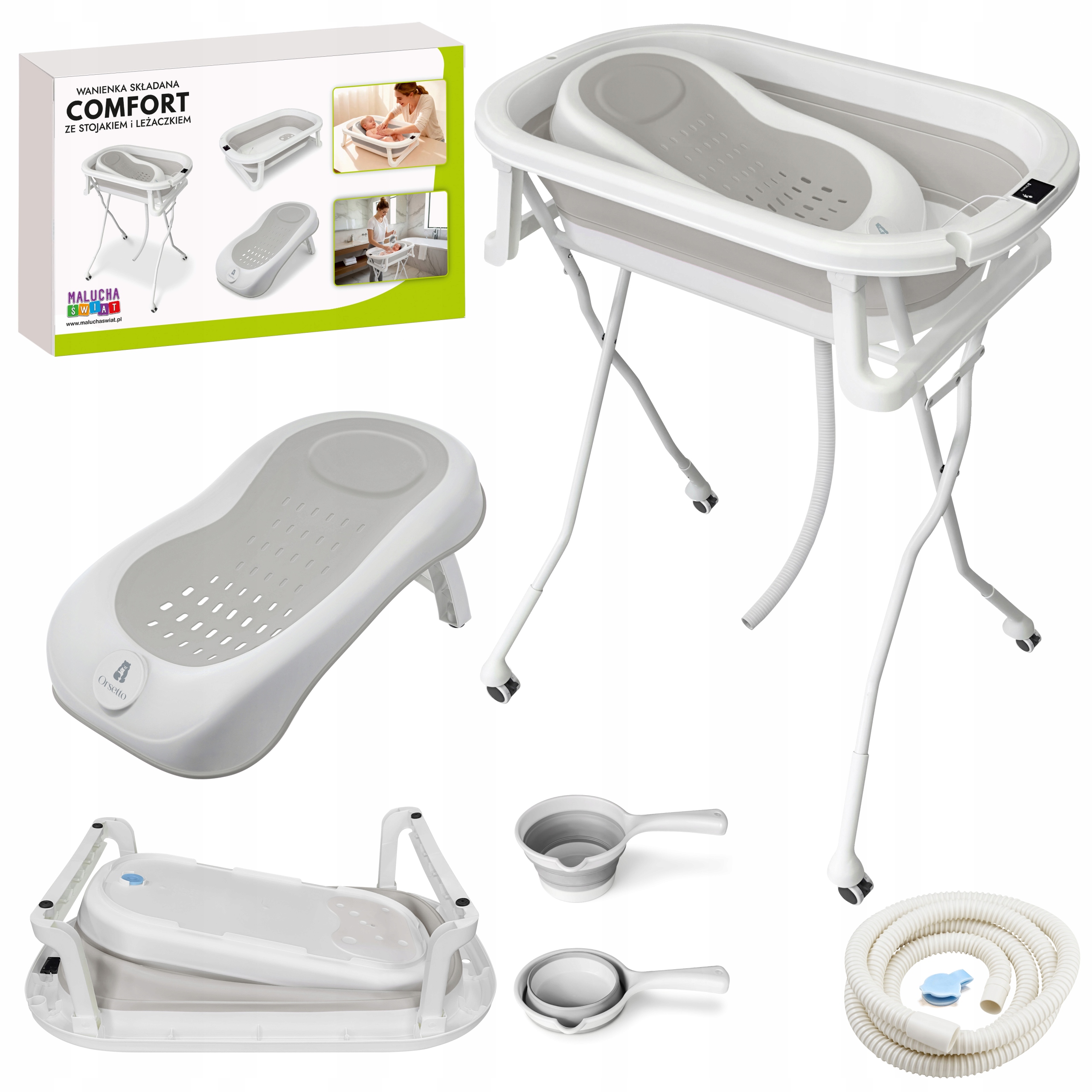 РОЗКЛАДНА ВАННА З ПІДСТАВКОЮ І ЛЕЖАКОМ ORSETTO СІРА + ПОЛИВАЧКА