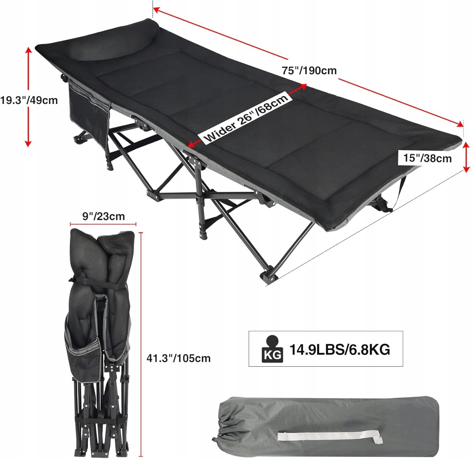 ⭐ Раскладная походная кровать с матрасом REDCAMP XL 190 см х 68 см