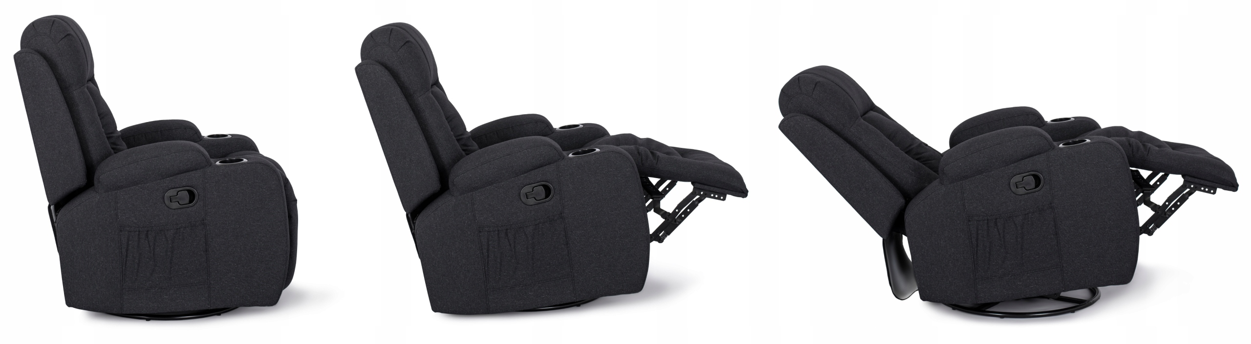 Чтобы разложить спинку, потяните черную ручку, расположенную снаружи с правой стороны кресла, в результате чего кресло развернется и поднимется подставка для ног. Чтобы вернуться в прежнее положение, необходимо положить руки на подлокотники и решительным движением переместить их на себя, при этом согнув колени, мы спрячем подставку для ног. На практике раскладывать кресло описанным способом очень плавно и приятно.