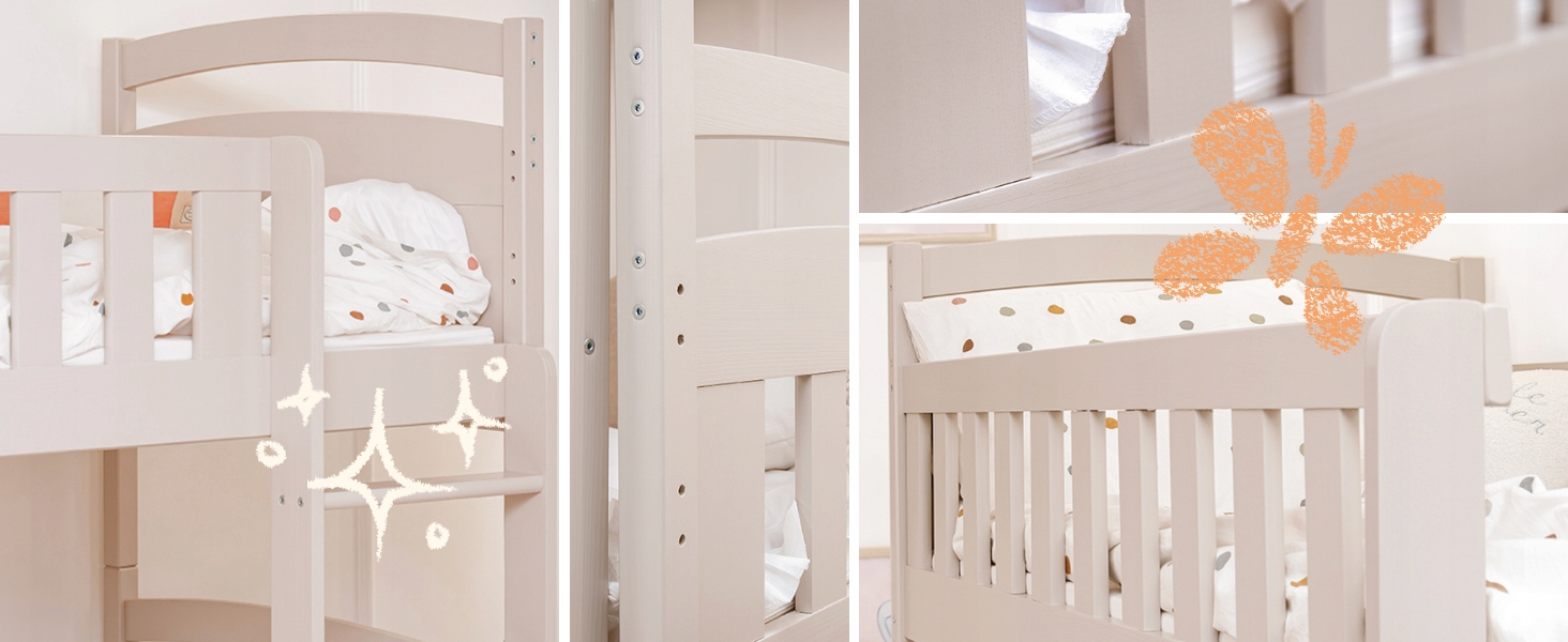 ➡️ Безопасность прежде всего: Прочные перила защищают ребенка во время сна, давая родителям спокойствие и уверенность в том, что ребенок в безопасности.