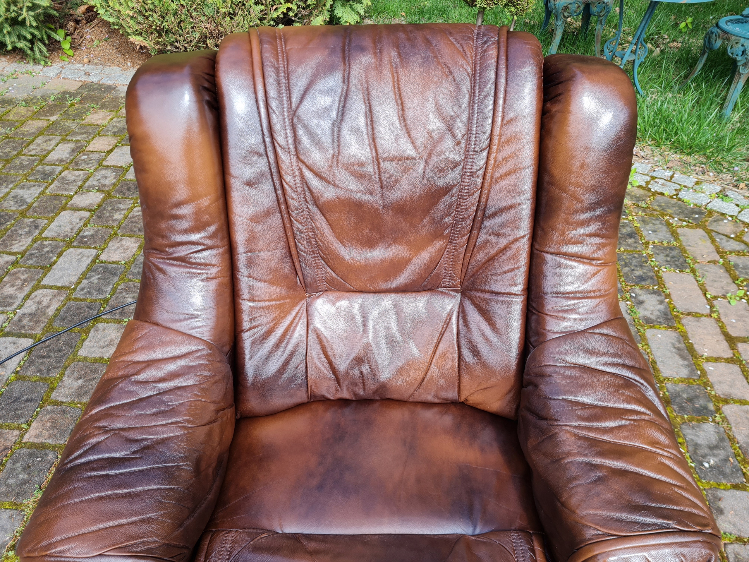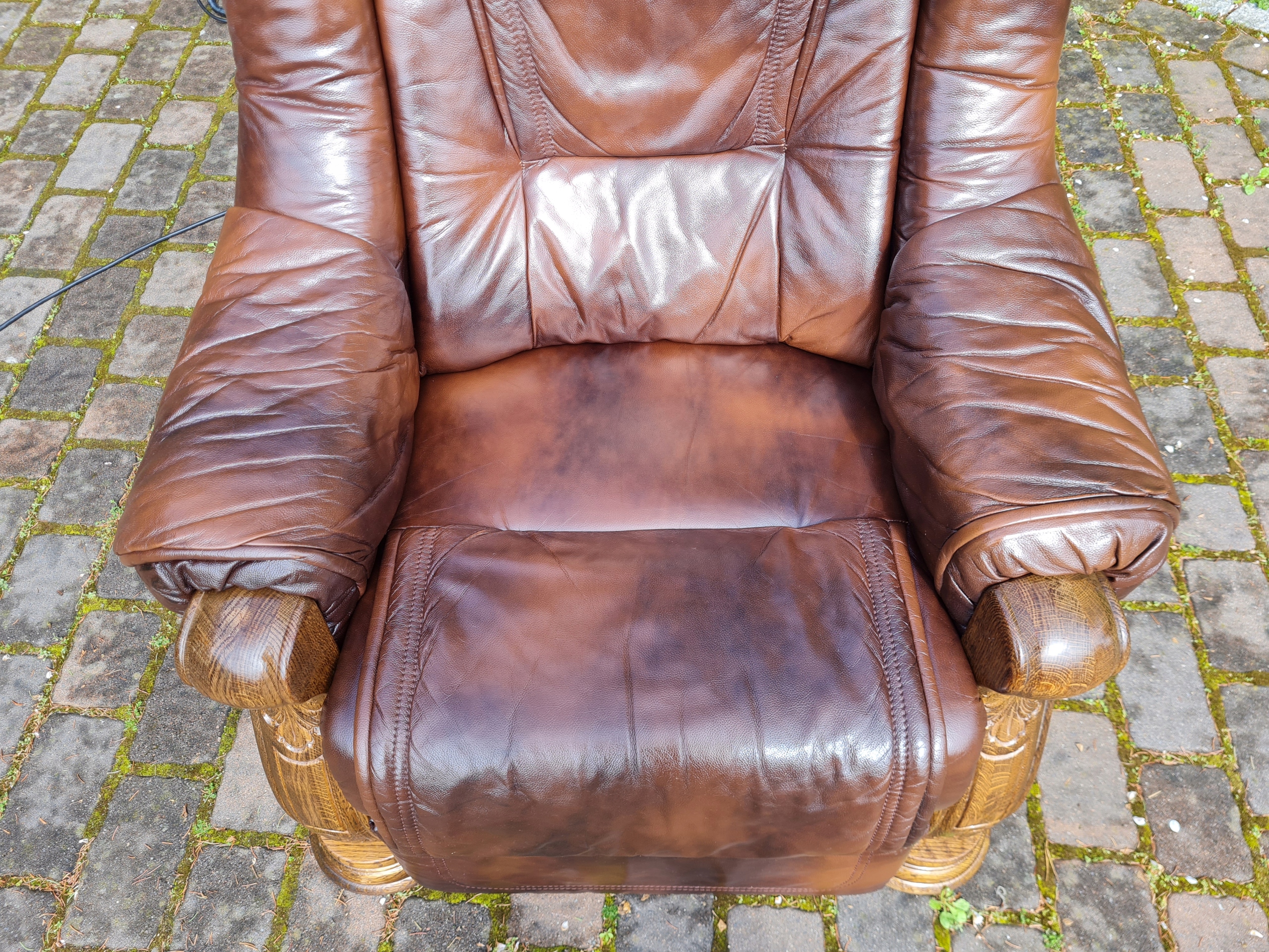 Складное кожаное кресло RELAX на дубовом каркасе с дистанционным управлением