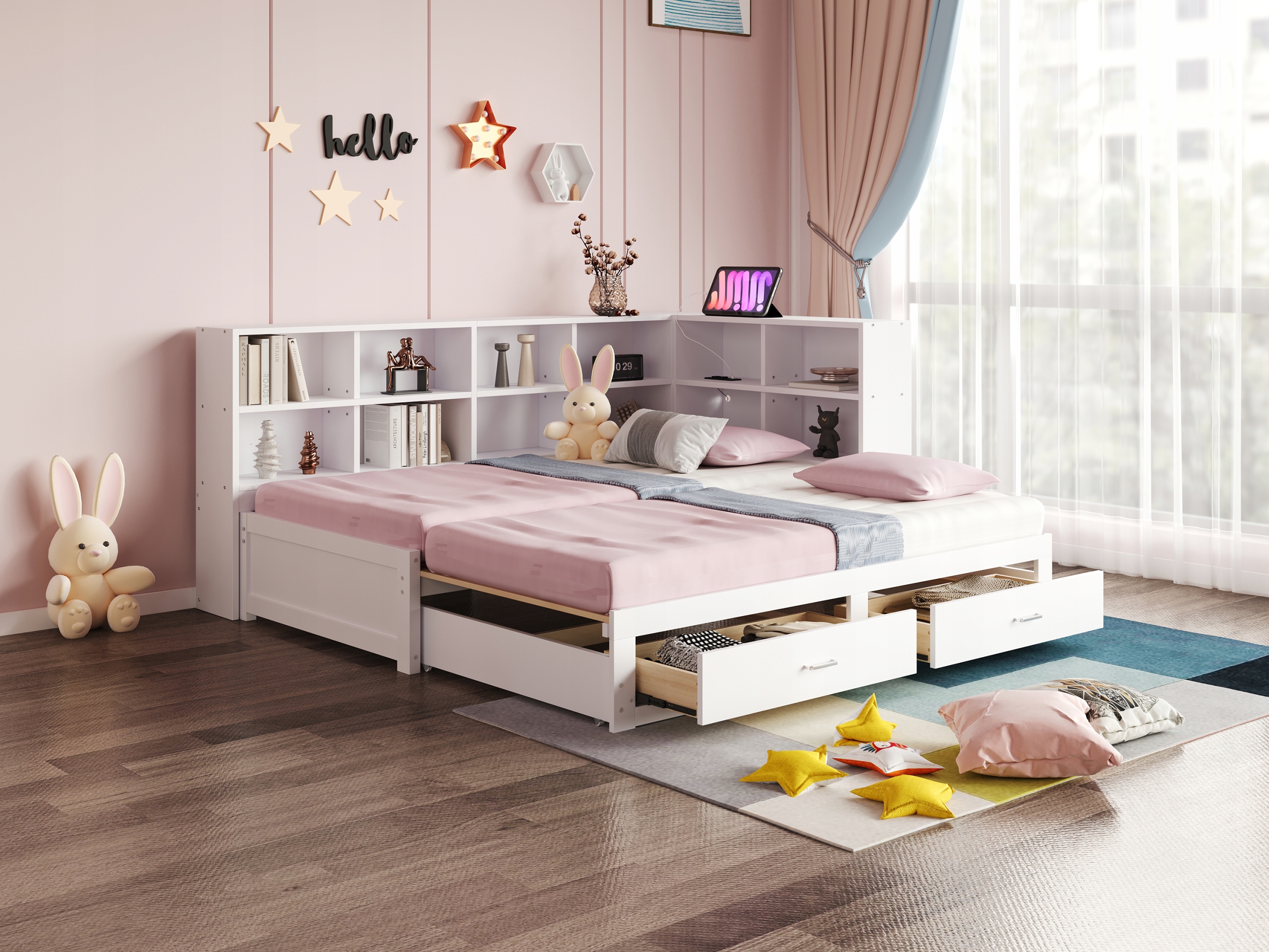 - - Полки и отделения в изголовье кровати, несколько отделений по бокам кровати и 2 ящика под выдвижной кроватью обеспечивают достаточно места для хранения повседневных вещей, книг и украшения.