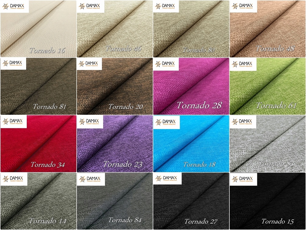 Ткань Торнадо Это самая универсальная ткань в нашей коллекции. Его преимуществом является метод отделки, делающий ткань устойчивой к пятнам. Жидкость, вылитая на ткань, не впитывается в нее, а стекает в виде капель по ее поверхности, создавая так называемую эффект ртути.