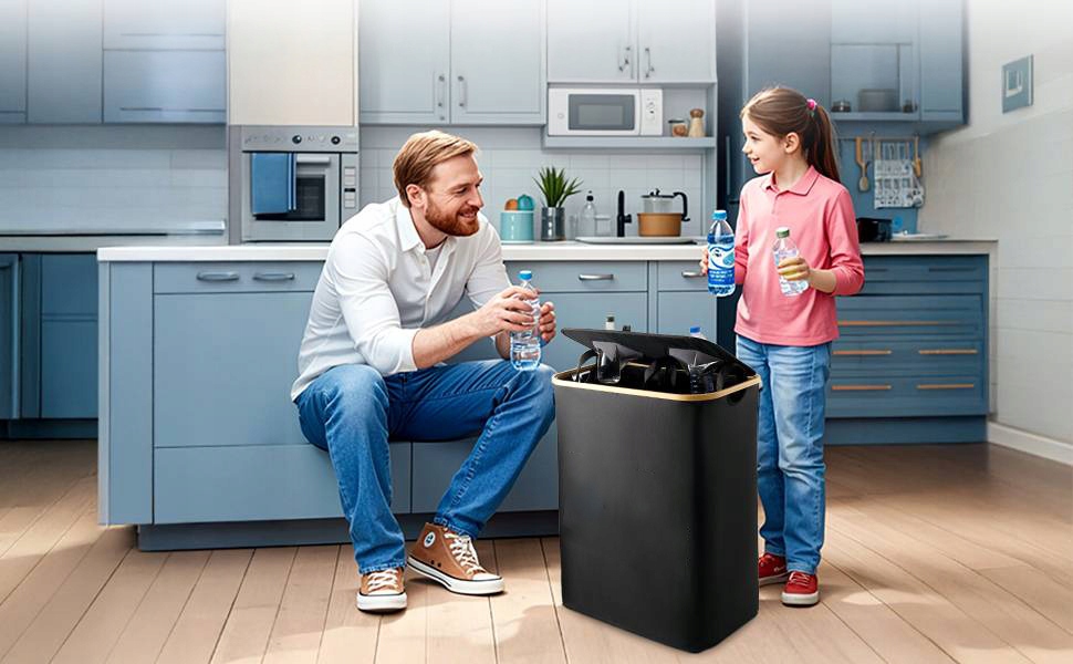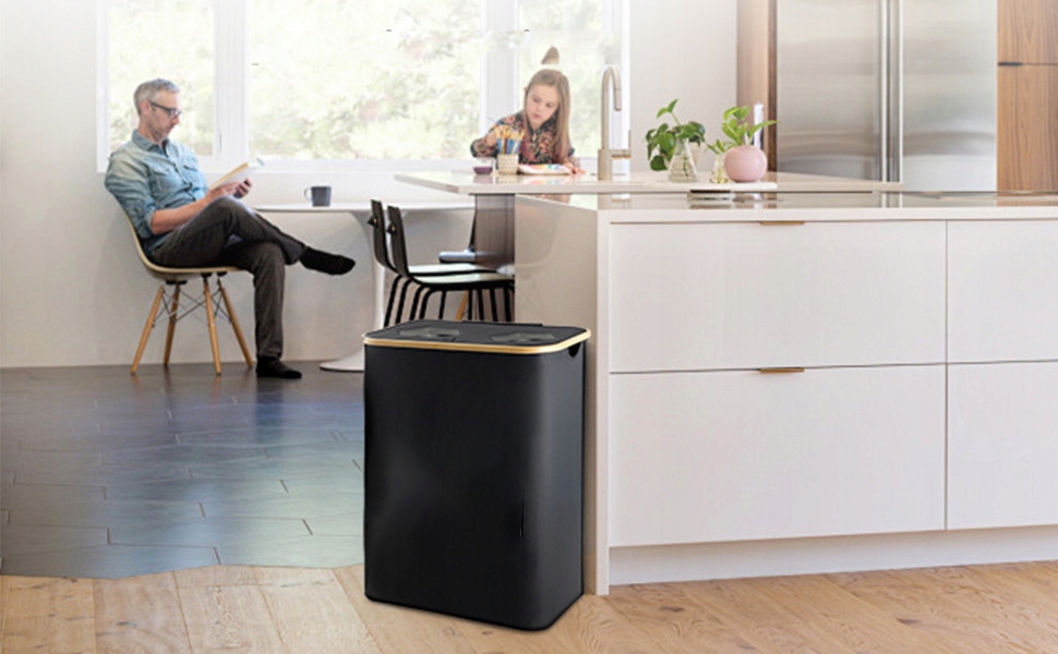 - ✔️- Большая емкость 140 литров, вмещающая около 100 бутылок, тщательно оборудована 2 отделениями, которые облегчают сортировку и хранение различных типов бутылок.