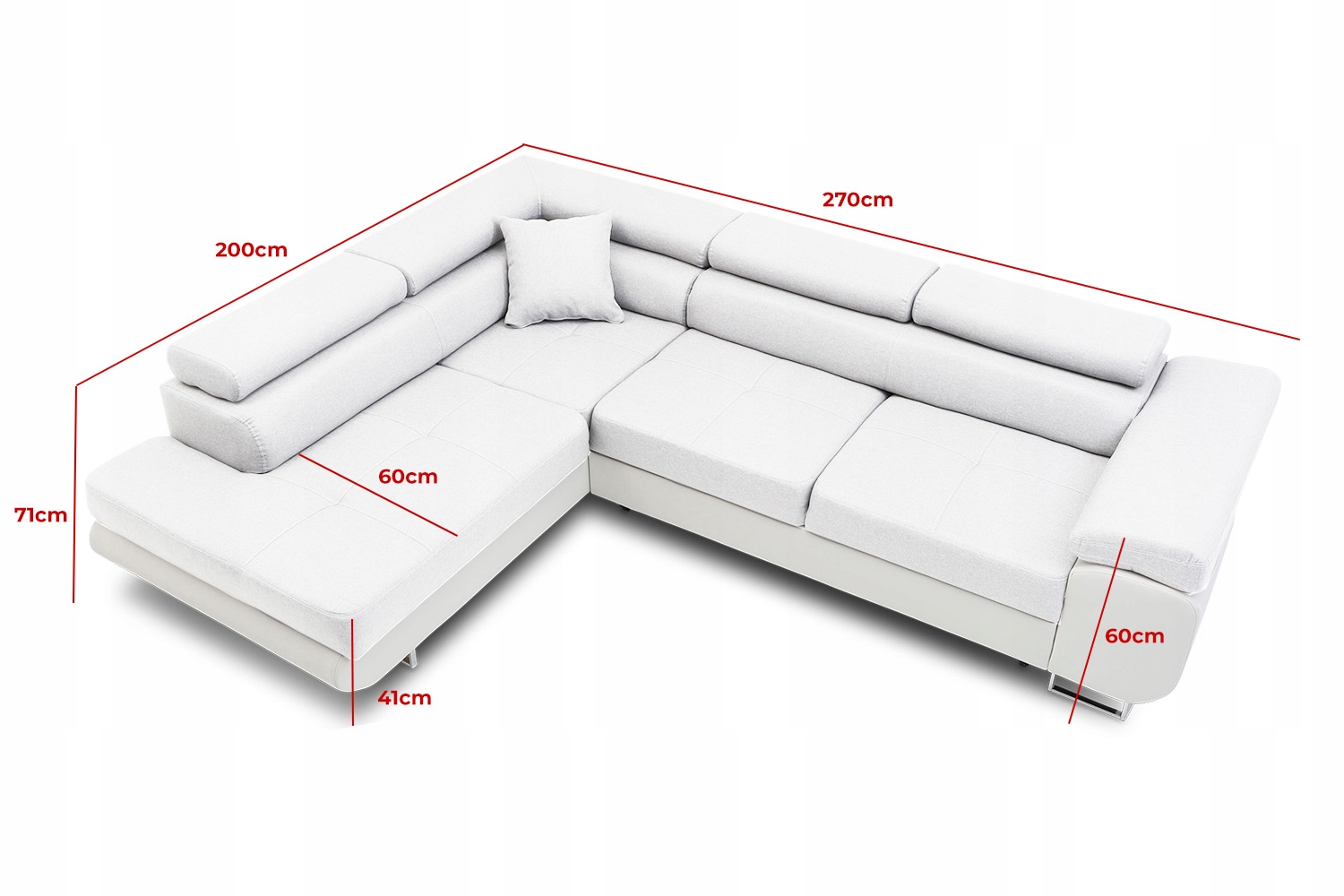 Угловой диван Rigatto со спальной функцией 270x200 с регулируемыми подголовниками