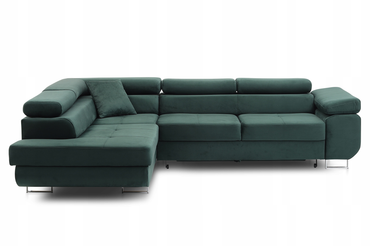 Угловой диван Rigatto выполнен в современном стиле. Ткани, использованные в оттенках серого, темно-синего или бутылочно-зеленого цвета, позволят мебели вписаться в любой интерьер. Угловой диван является отдельностоящим (спинка полностью покрыта тканью), что означает, что вы можете разместить его в любом месте гостиной, а нежные хромированные ножки придадут ему дополнительную характер, облегчающий повседневную уборку.