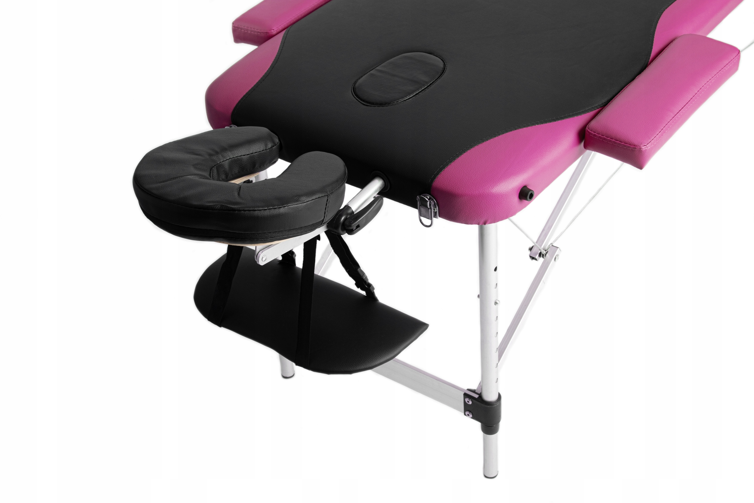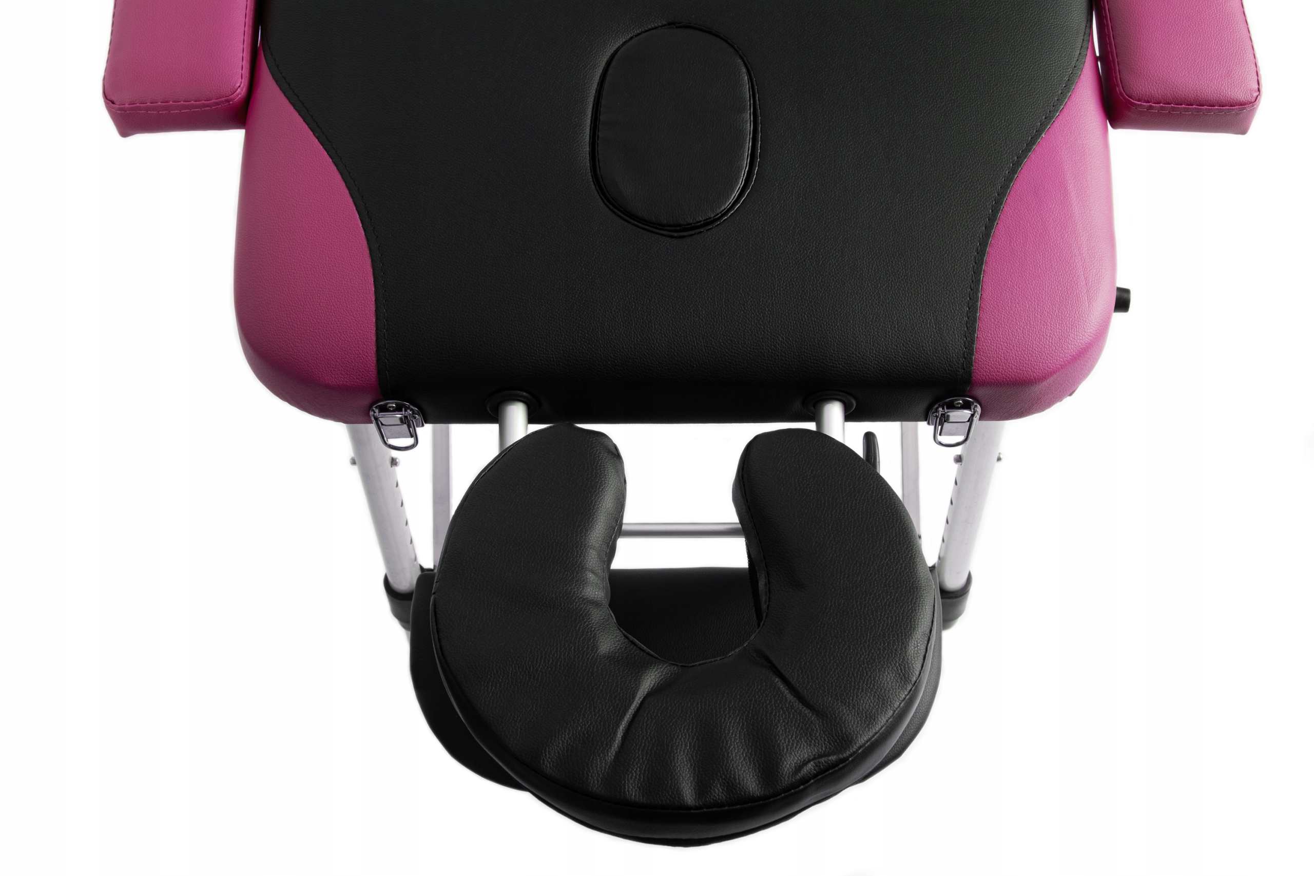 Розкладний масажний стіл Rea Tape 3-х сегментний алюмінієвий, чорно-рожевий