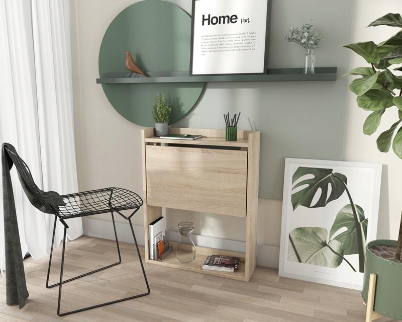 Если вы хотите использовать его как письменный стол, просто выдвиньте полку, которая станет практичной столешницей.