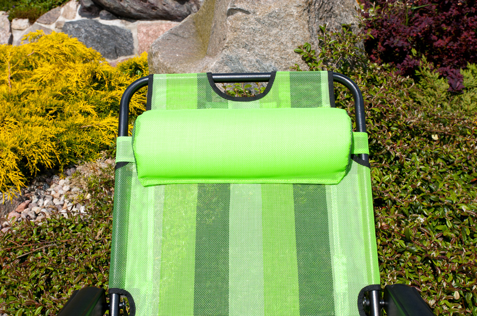 Шезлонг изготовлен из качественных материалов, что обеспечивает долгосрочное использование. Современный дизайн шезлонга позволяет разместить его как в сидячем, так и в лежачем положении.Шезлонг имеет регулируемый подголовник. В сложенном виде он занимает мало места и его легко транспортировать. Все это устойчиво к погодным условиям