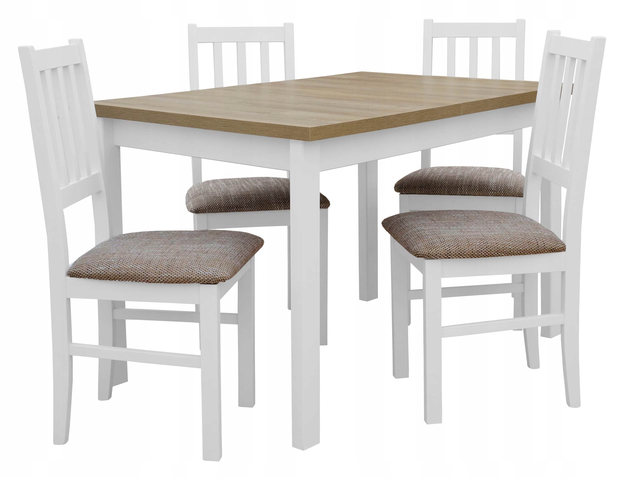 РАСДВИЖНОЙ СТОЛ + 4 СТУЛА КОМПЛЕКТ КУХОННАЯ СТОЛОВАЯ X006 БЕЛЫЙ/ДУБ ВНУКА
