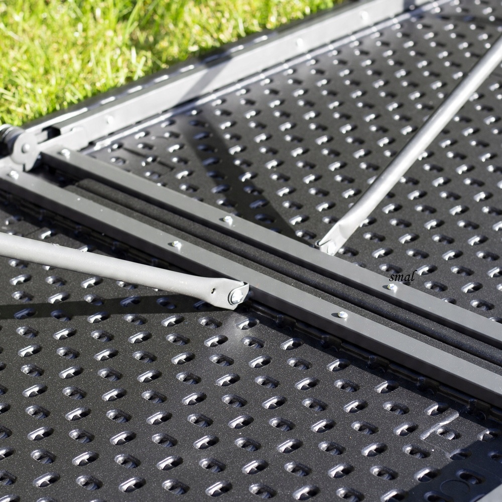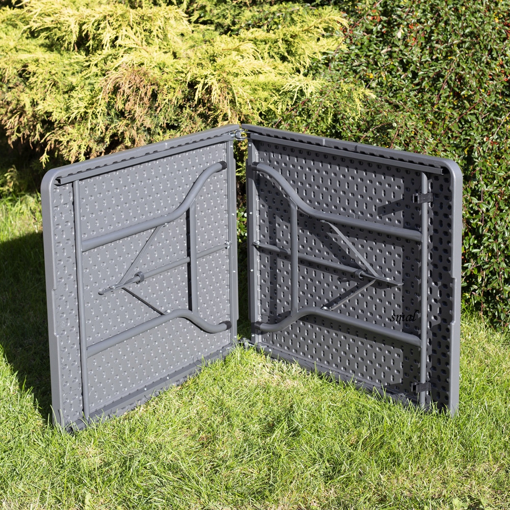 Складной обеденный стол — идеальный выбор для людей, которые ценят простоту и функциональность. Идеально подходит для мероприятий на открытом воздухе, банкетных залов, ресторанов и отелей. Также идеально подходит для сада. Стол имеет практичную ручку, благодаря которой его легко переносить, а в сложенном виде он занимает очень мало места. Металлический каркас гарантирует устойчивость. Столешница из полипропилена, 100% водонепроницаемая. Изготовлена из материалов высочайшего качества. Устойчив к вредным погодным условиям.