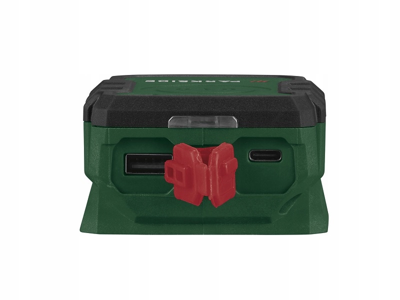 - позволяет заряжать смартфоны, планшеты или фотоаппараты с аккумуляторами Parkside напряжением 20 В.