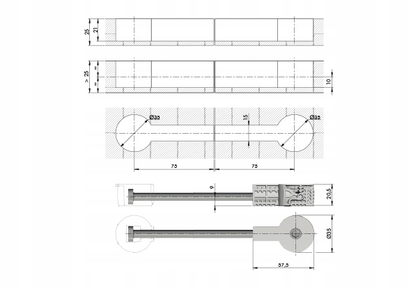 - Размер отверстия/Can: fi 35 мм