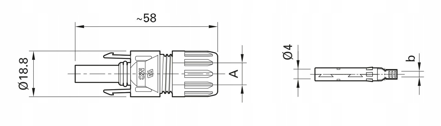 - Размеры (длина x диаметр Ø): вилка 61 x Ø18. 0,8 мм, гнездо 58 x Ø18,8 мм