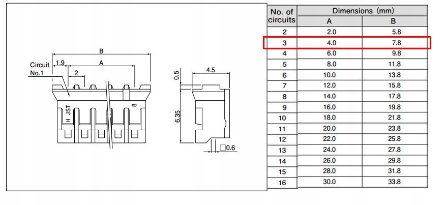 Разъем разъема JST PH 2,0 мм 3PIN CONTER Cube