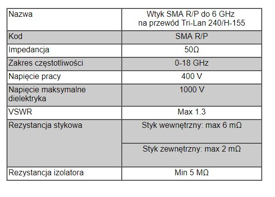Просматривая «Разъем SMA / RP, кабель Tri-Lan 240 и Belden H-155», вы можете быть уверены, что данный товар из каталога «Остальные» будет доставлен из Польши и проверен на целостность. В цене товара, указанной на сайте, учтена доставка из Польши. Внимание!!! Товары для Евросоюза, согласно законодательству стран Евросоюза, могут отличаться упаковкой или наполнением.