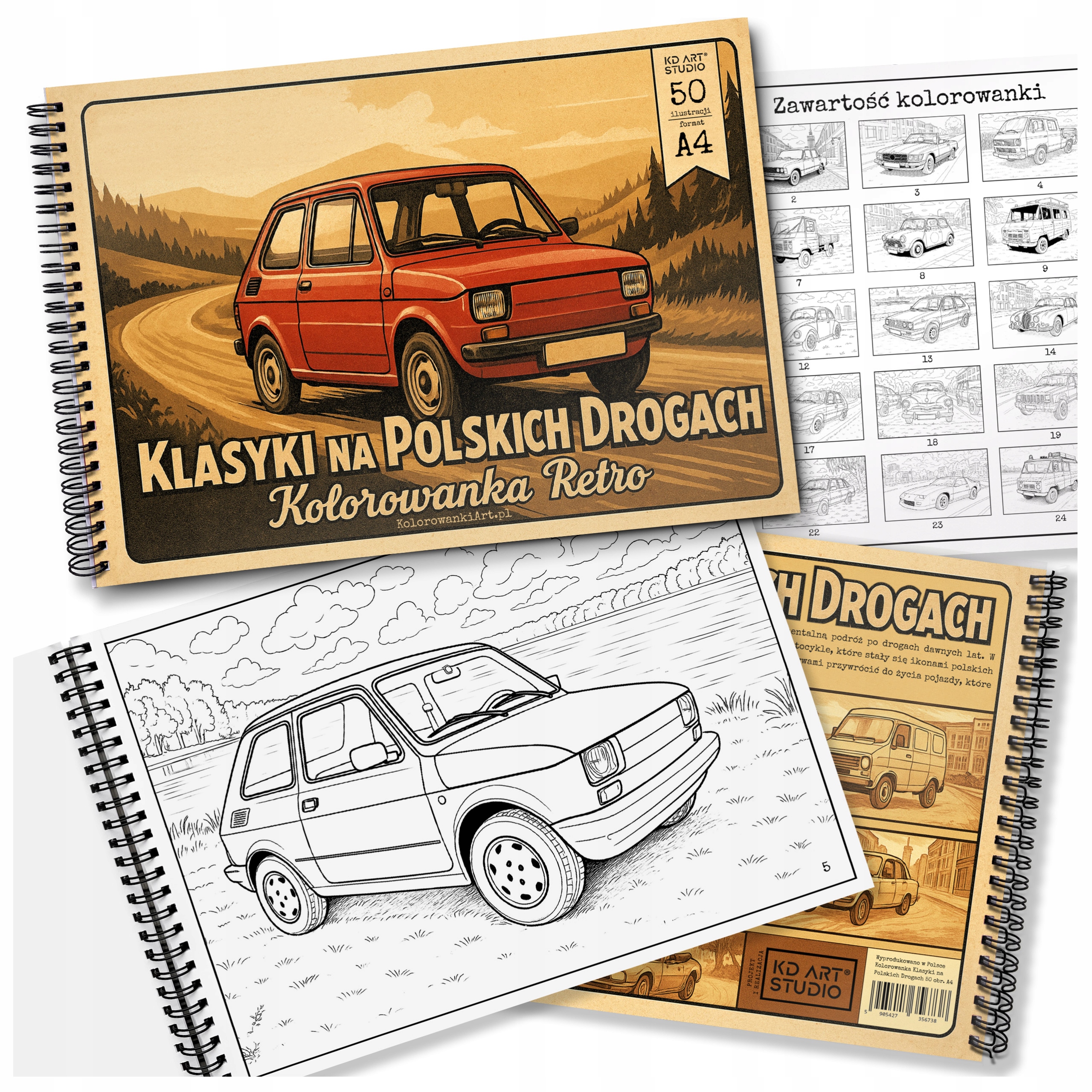 Каждая иллюстрация была подготовлена на высококачественной бумаге A4, а спиральный светильник облегчает комфортную окраску. «Классика на польских дорогах» - это идеальная раскраска для взрослых и всех поклонников польской ретро -автомобильной промышленности, которые ищут минуту расслабления и расслабления в искусстве.