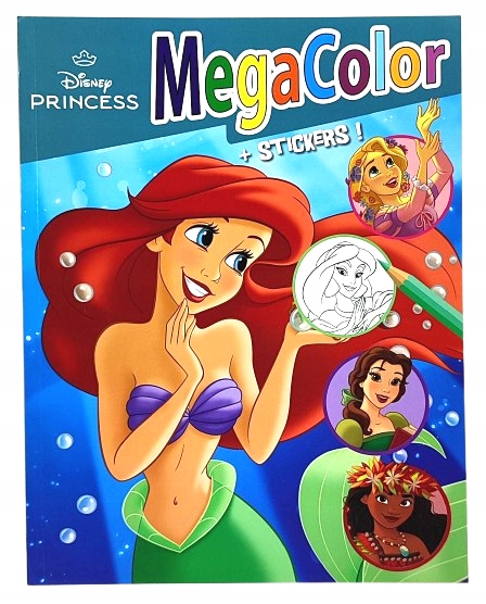 Классическая книжка-раскраска Megacolor Disney Mermaid Ariel и другие, 128 страниц А4, лист наклеек, книжка-раскраска