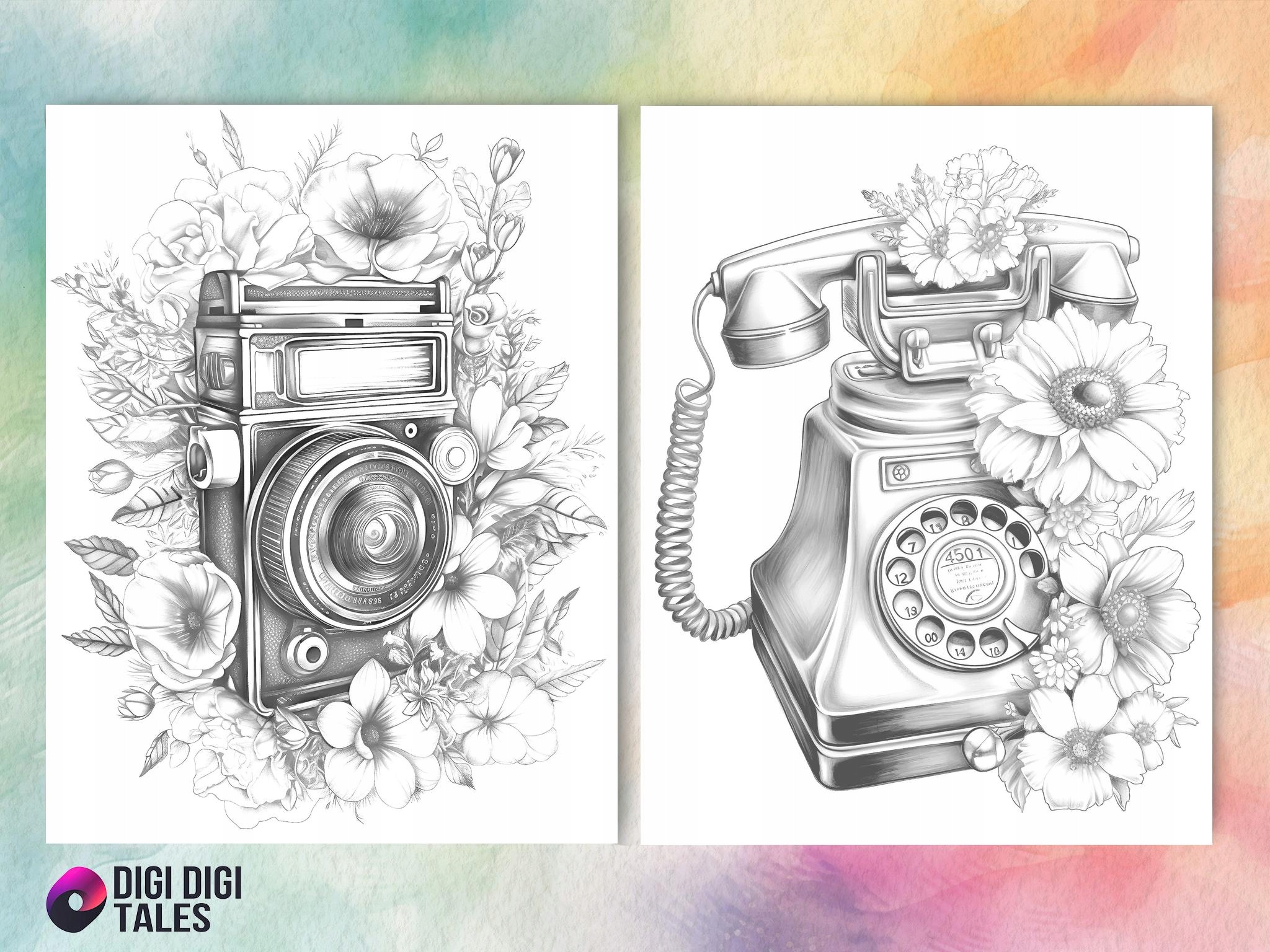 ✅ Откройте для себя волшебство прошлых лет в книжке-раскраске, полной ностальгии. Внутри вы найдете 25 уникальных иллюстраций с мотивами старых фотоаппаратов, пишущих машинок, чемоданов и писем - всего, что напоминает нам о красоте прошлого.