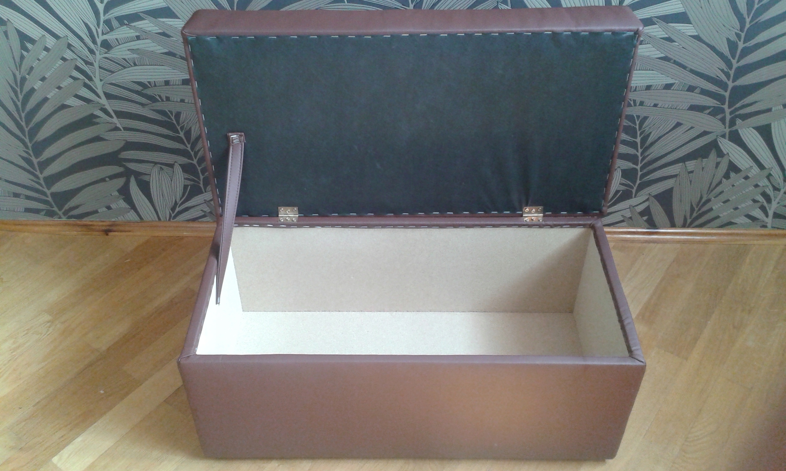 МЫ ПРЕДЛАГАЕМ ВАМ ПУФОВУЮ КОРОБКУ ИЗ ЭКО-КОЖИ РАЗМЕРАМИ ОКОЛО 80Х40Х40
