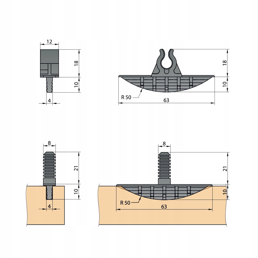 CLIPS — разъемный мебельный соединитель, предназначенный для крепления крышек, вентиляционных решеток и чехлов. Особая конструкция крючка позволяет регулировать положение двух частей соединителя относительно друг друга - позволяет уменьшать или увеличивать расстояние между компонентами мебели