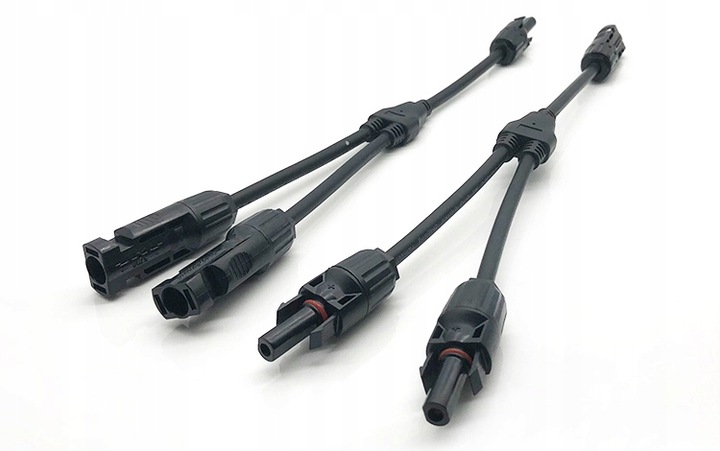 Пара длинных двусторонних разъемов с фотокабелем MC4 (+) и (-).