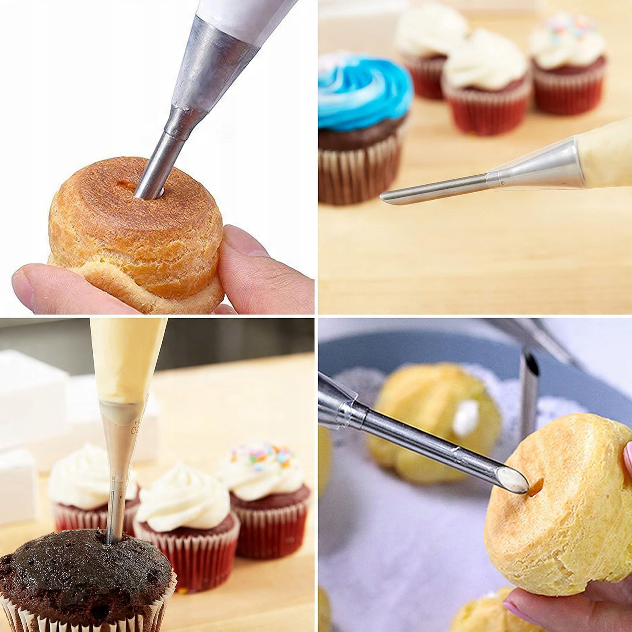 Мы представляем набор из двух Кондитерская задница для начинки, которая, безусловно, облегчит вашу работу на кухне. Изготовленная из высококачественной нержавеющей стали, эти прикладки обеспечивают долговечность и длительное использование. Независимо от того, готовите ли вы пончики, трубки, слойки, пирожные или другие деликатесы, они будут соответствовать вашим ожиданиям. Так много: 2, 5 x 9,5 см