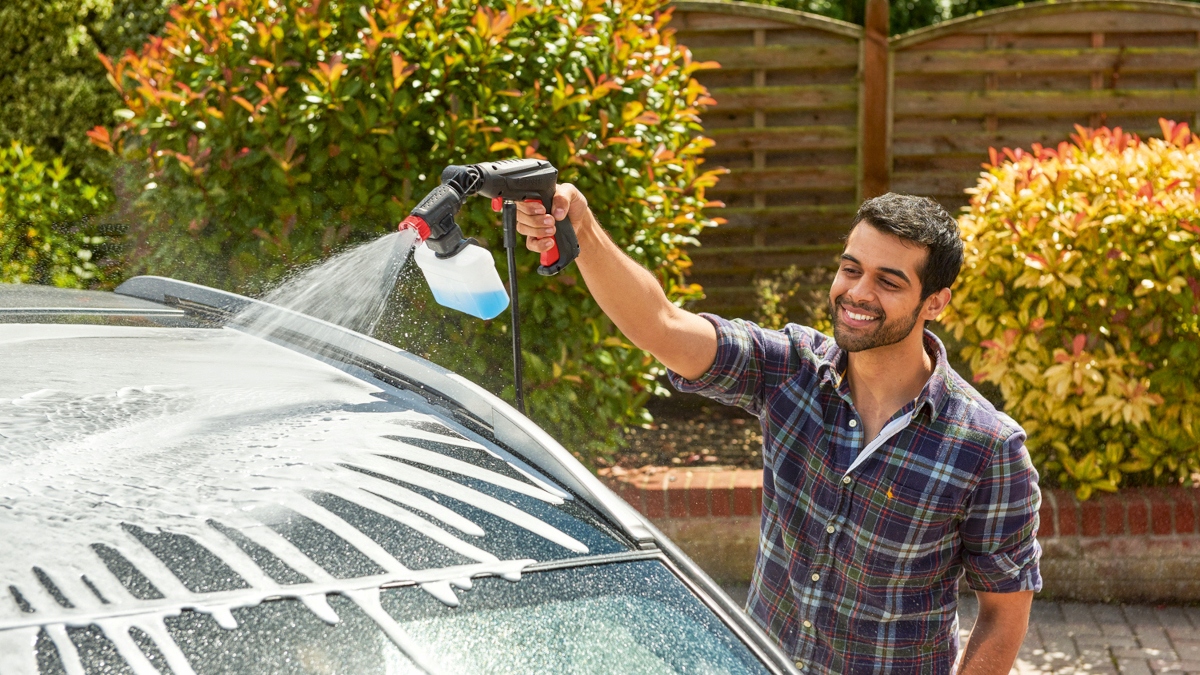 Распылитель на 360°позволяет быстро и очень удобно очищать поверхности. Пистолет оснащен разъемом на 360°, позволяющим полностью повернуть пистолет и разместить его в удобном для работы положении. Идеально подходит для уборки сада и мытья автомобилей.