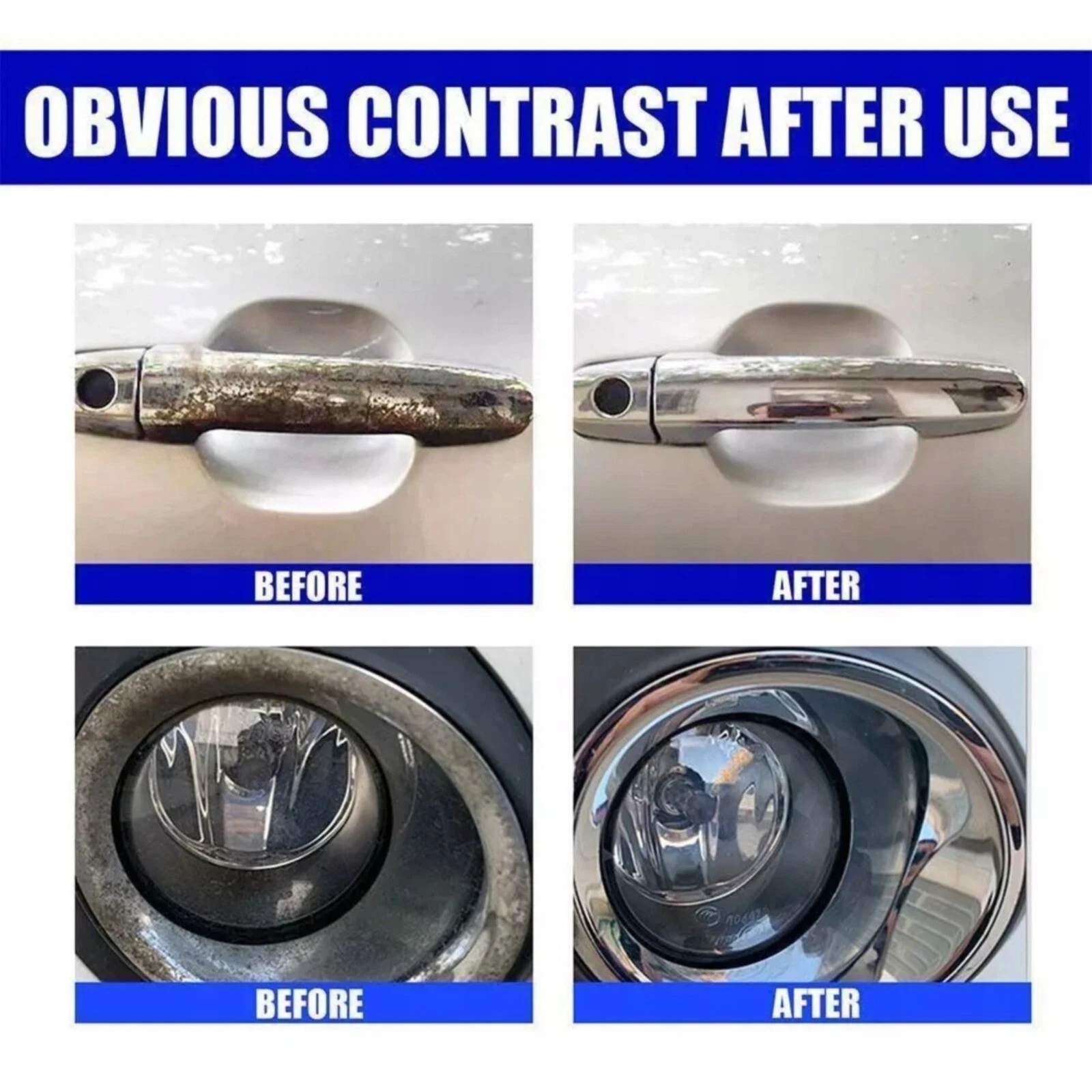 дает светящийся блеск для металлических объектов. Быстрое удаление ржавчины. Сильный антикоррозивный агент, оставляет металлический блеск.