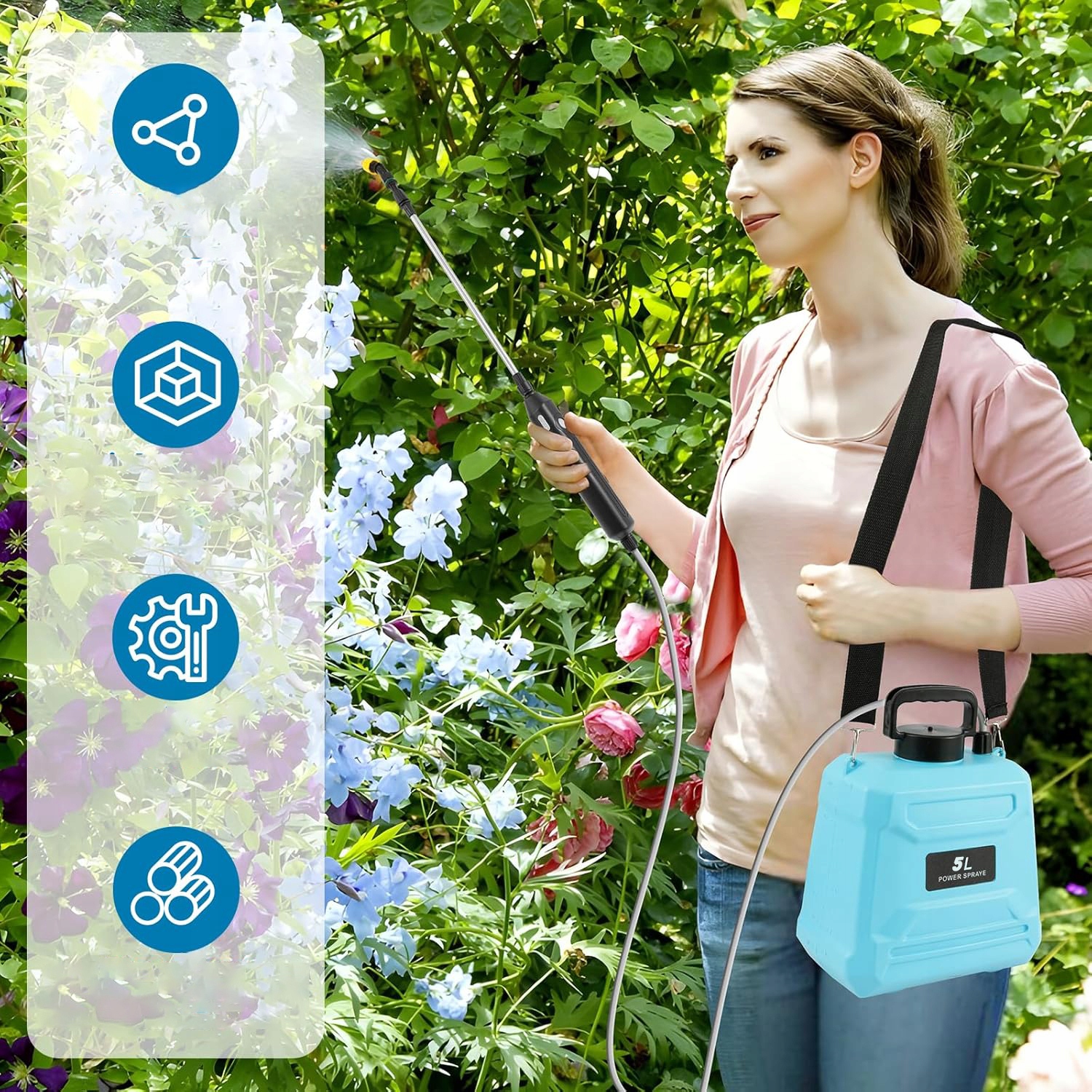 🌱 Электрический распылитель предназначен как для внешнего, так и для внутреннего использования.