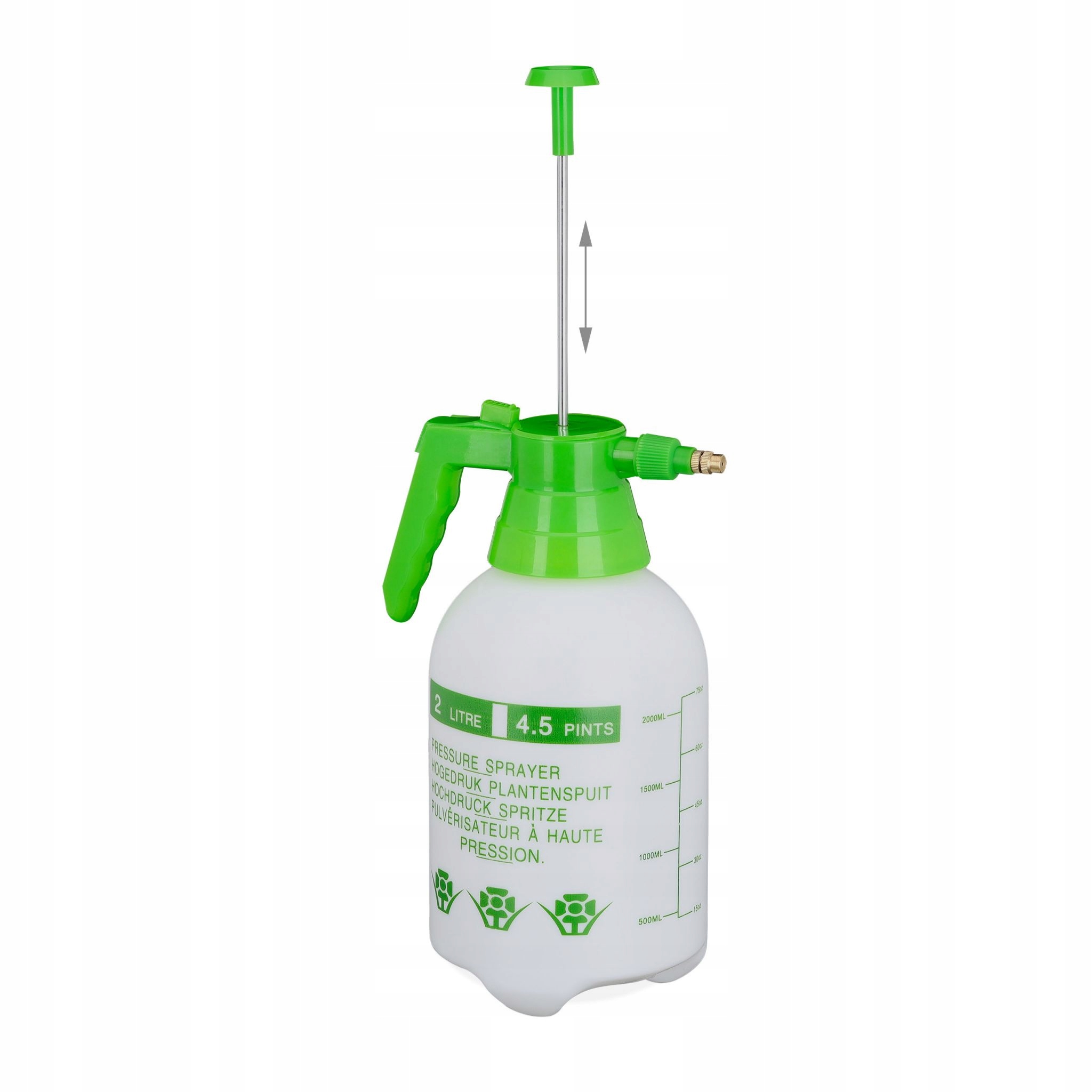 Бутылка с брызги насоса полезна для ухода за растениями и защиты. Распылитель давления подходит как для полива, так и для распыления гербицидов. Регулируя медную форсунку, вы можете установить мощность брызги - от тумана в непрерывный поток. Сопло с возможностью блокировки облегчает постоянное распыление без необходимости удерживать его все время. Благодаря практической масштабе, вы всегда можете проверить уровень заполнения садового опрыскивателя.