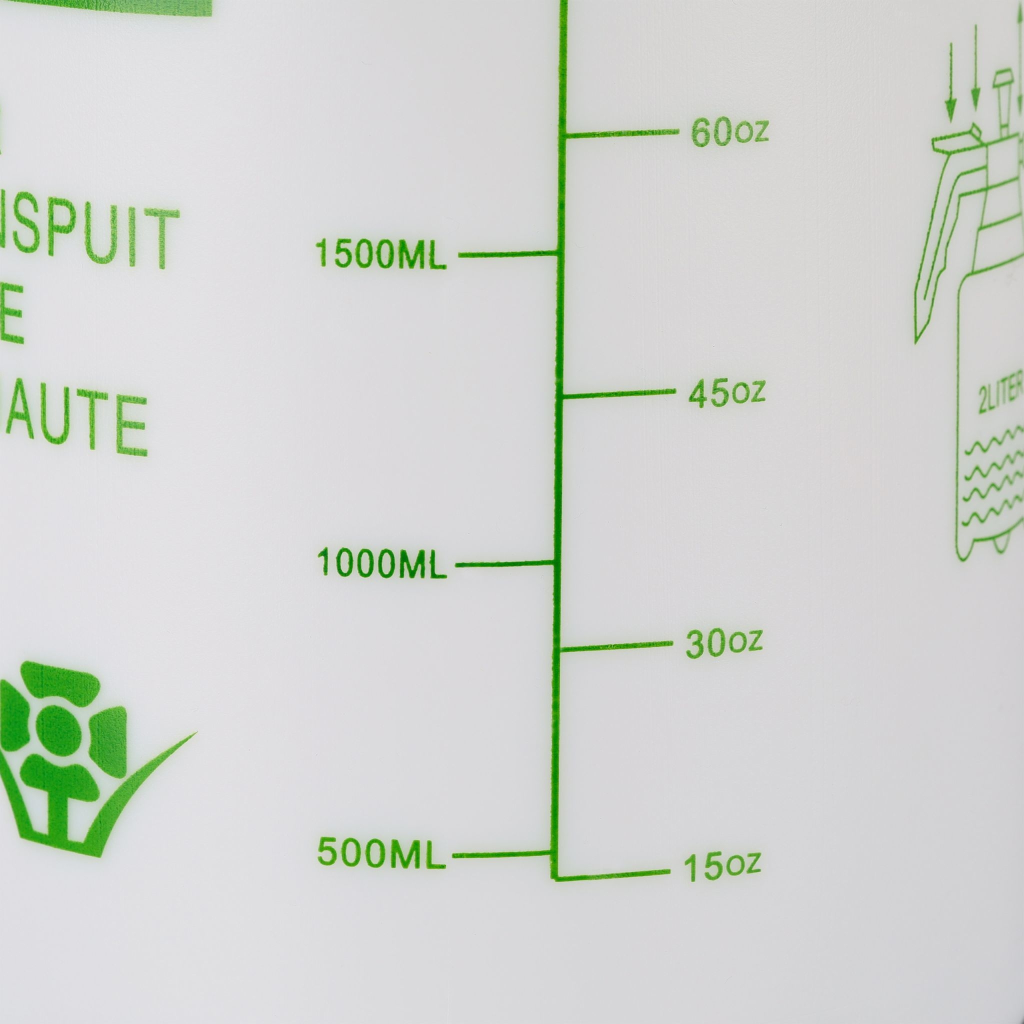 ✔l со шкалой в литрах и унциях, указывающих уровень заполнения