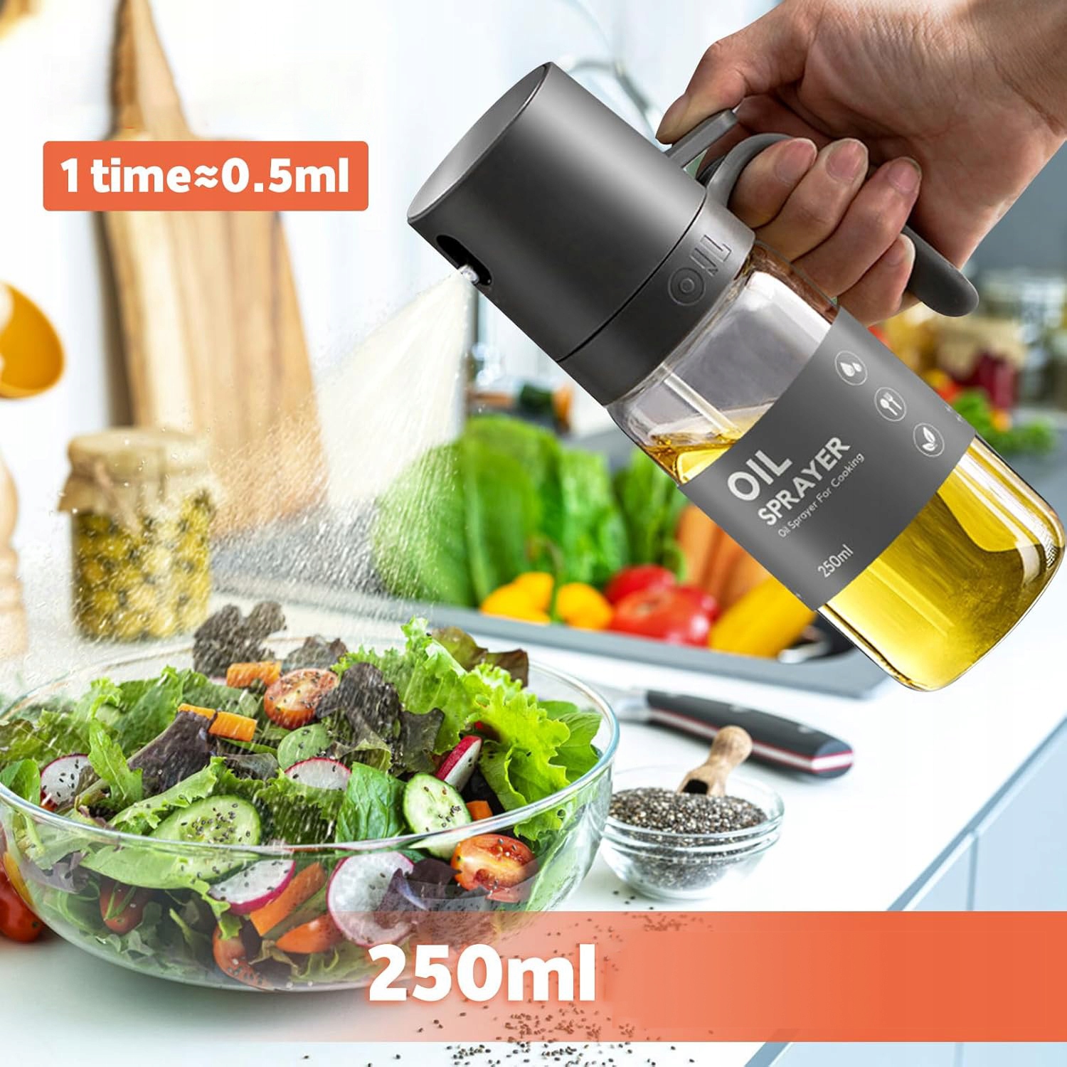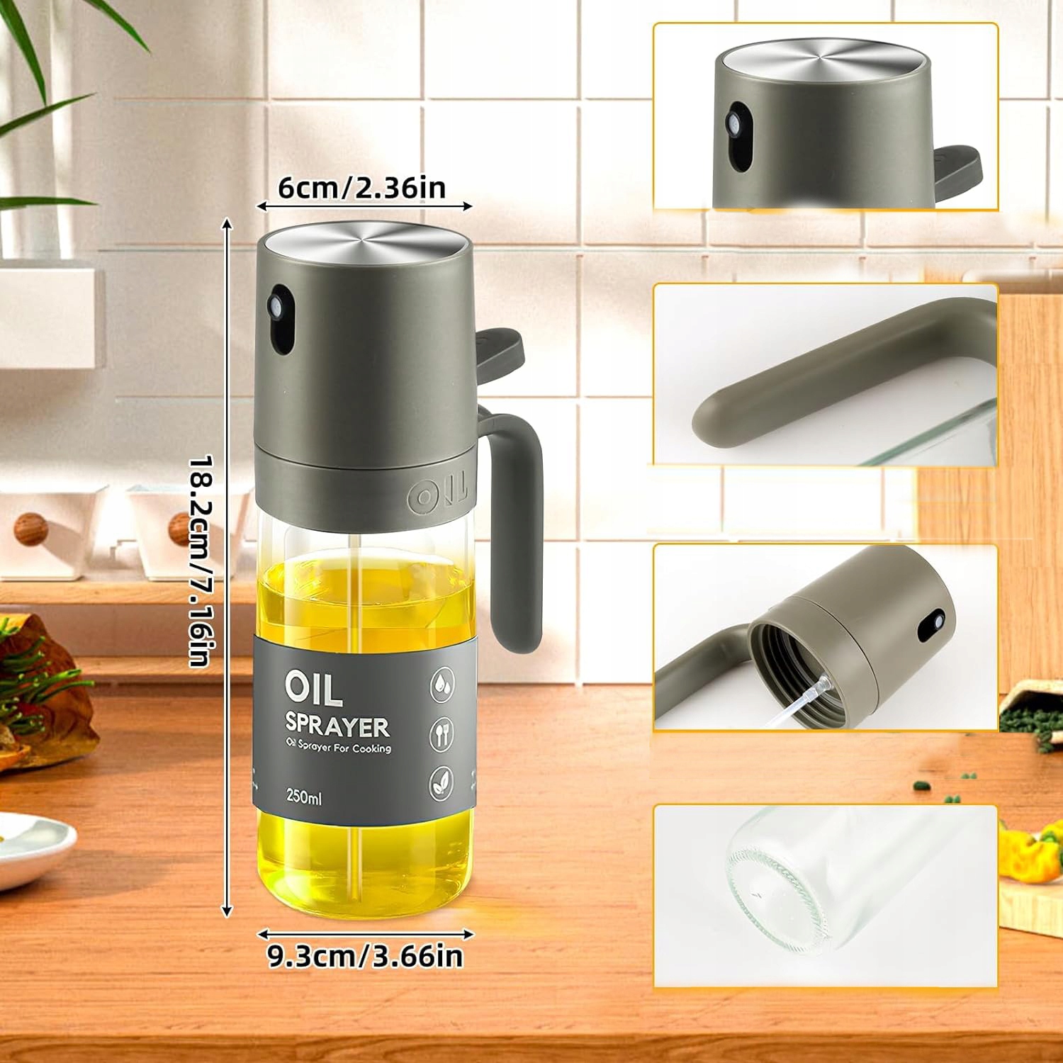 🍱 Ручка эргономично спроектирована. Просто быстро нажмите дно, и масло будет равномерно распылено на еду.