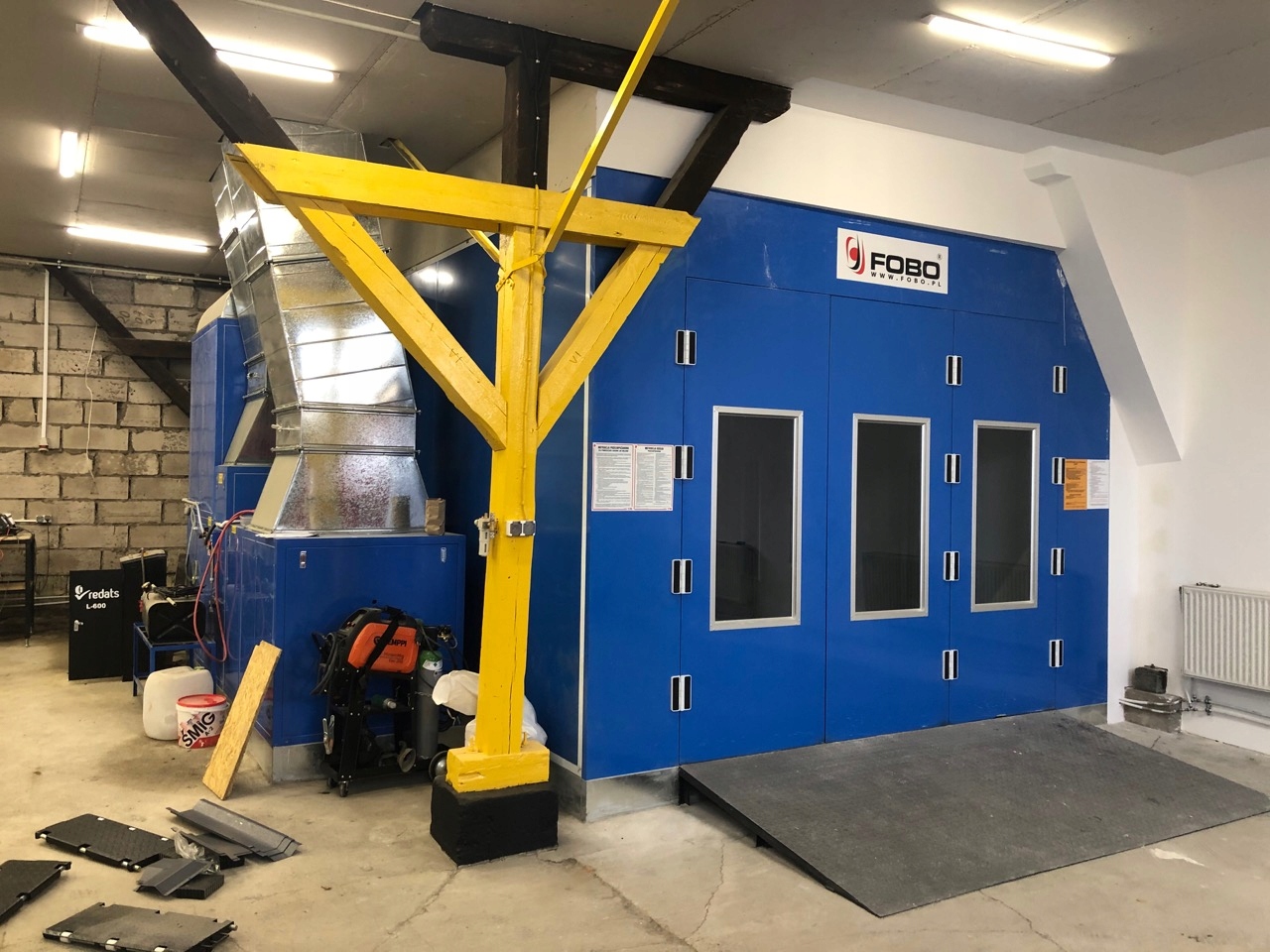 Предмет аукциона – покрасочная камера FOBO модели EF 2000T. Кабина представляет собой отдельно стоящее устройство с собственным основанием, оснащенным масляной горелкой – это комплексное решение для покраски.