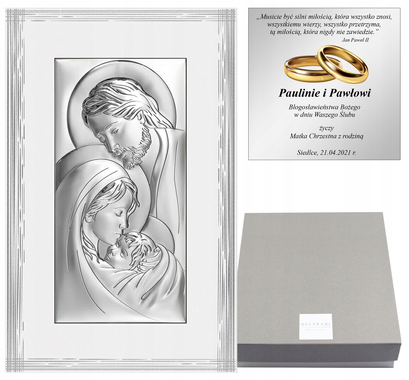 ЖИВОПИСЬ СЕРЕБРА СВЯТОЕ СЕМЬЕ СУВЕНИРЫ ДЛЯ СВАДЕБНОГО КРЕЩЕНИЯ С ГРАВИРОВКОЙ