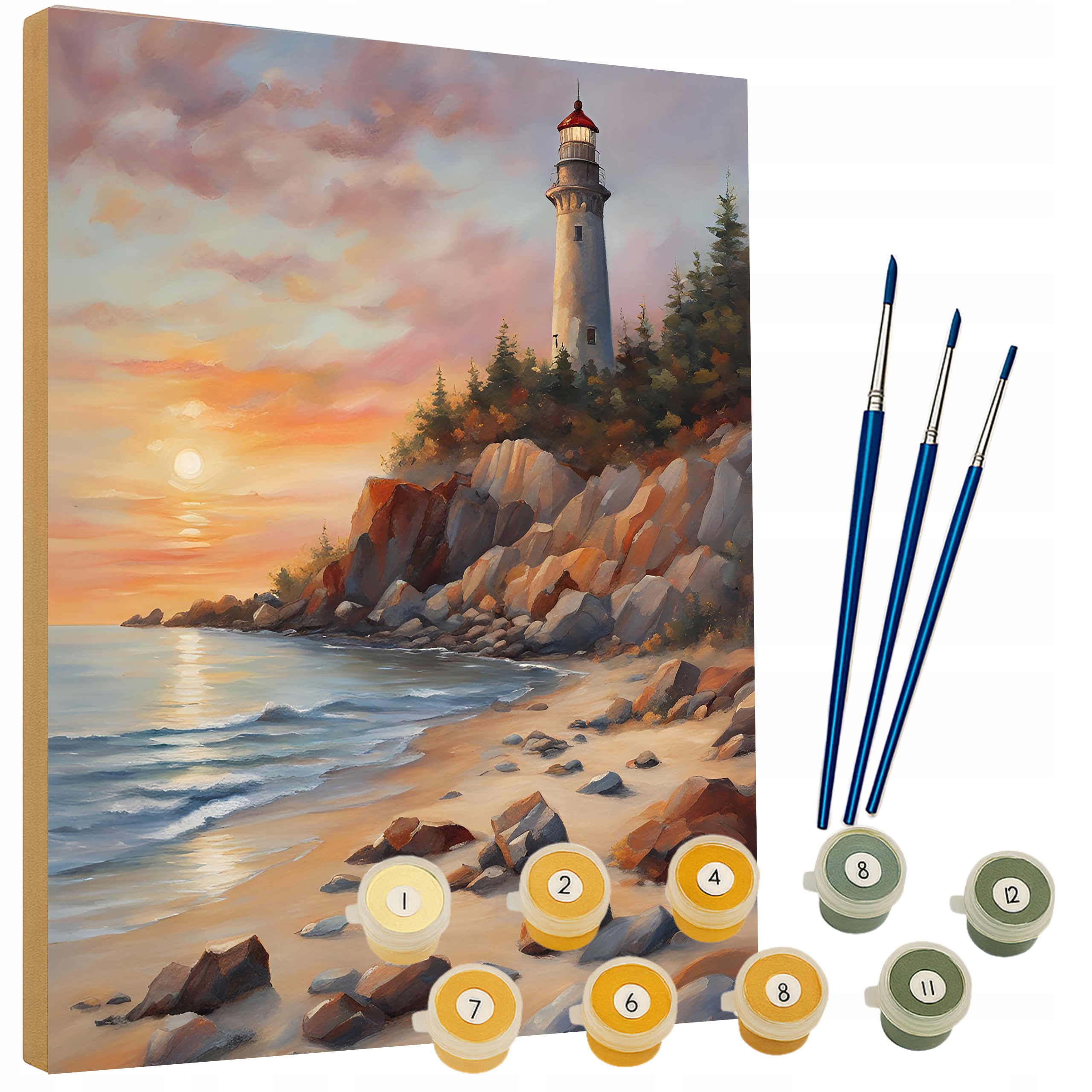 КАРТИНА ПО ЦИФРАМ В РАМКЕ + НАБОР КРАСОК + 3 КИСТИ ДЛЯ МАСКИ