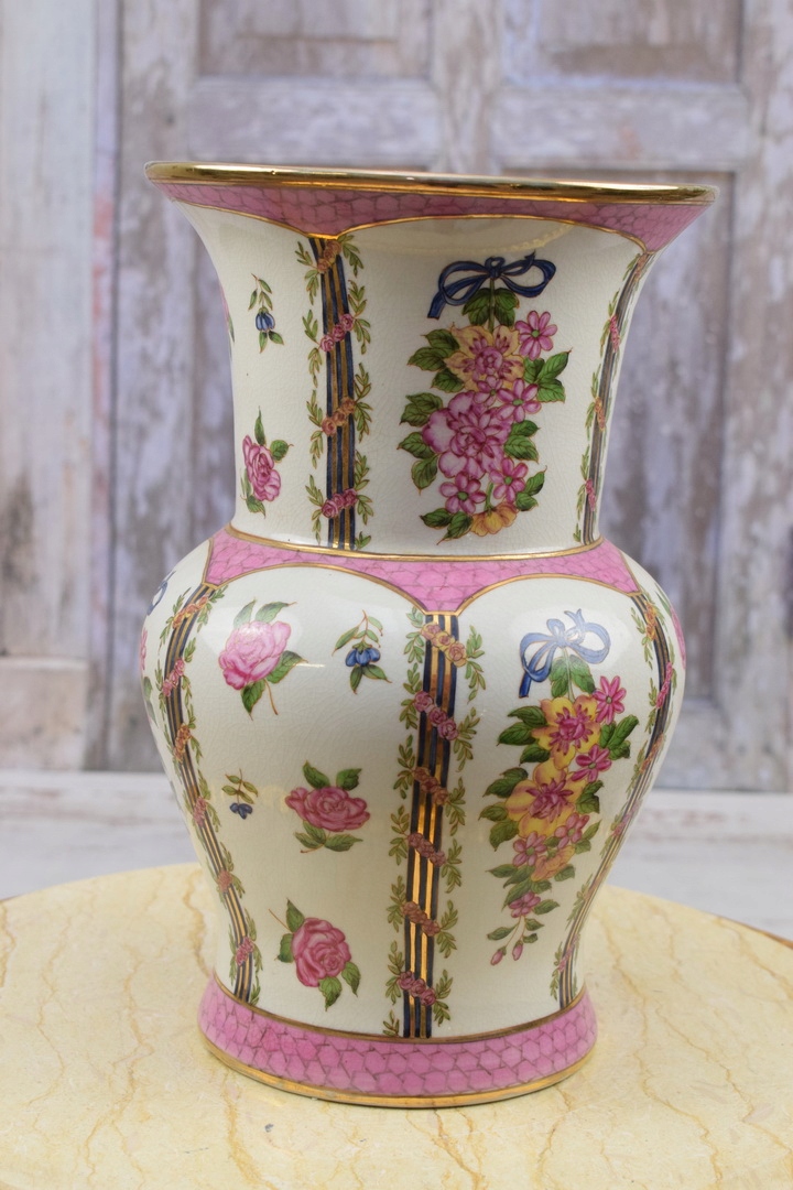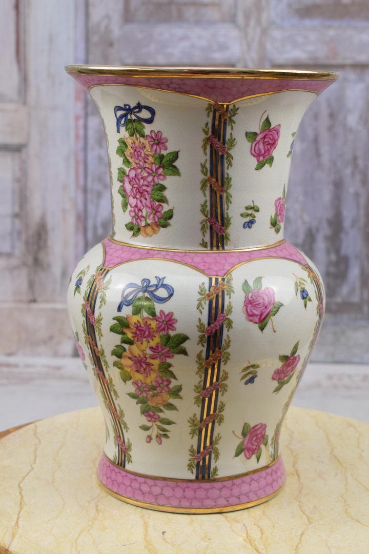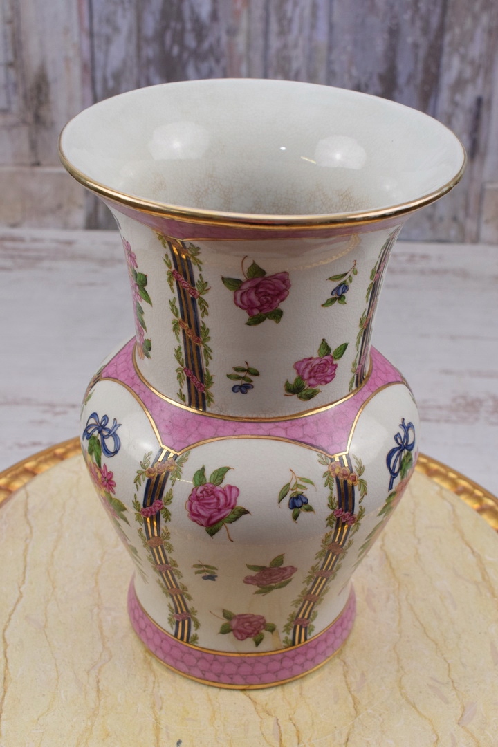 Розписана порцеляна, позолочена ваза з квітами - модерн - підписана