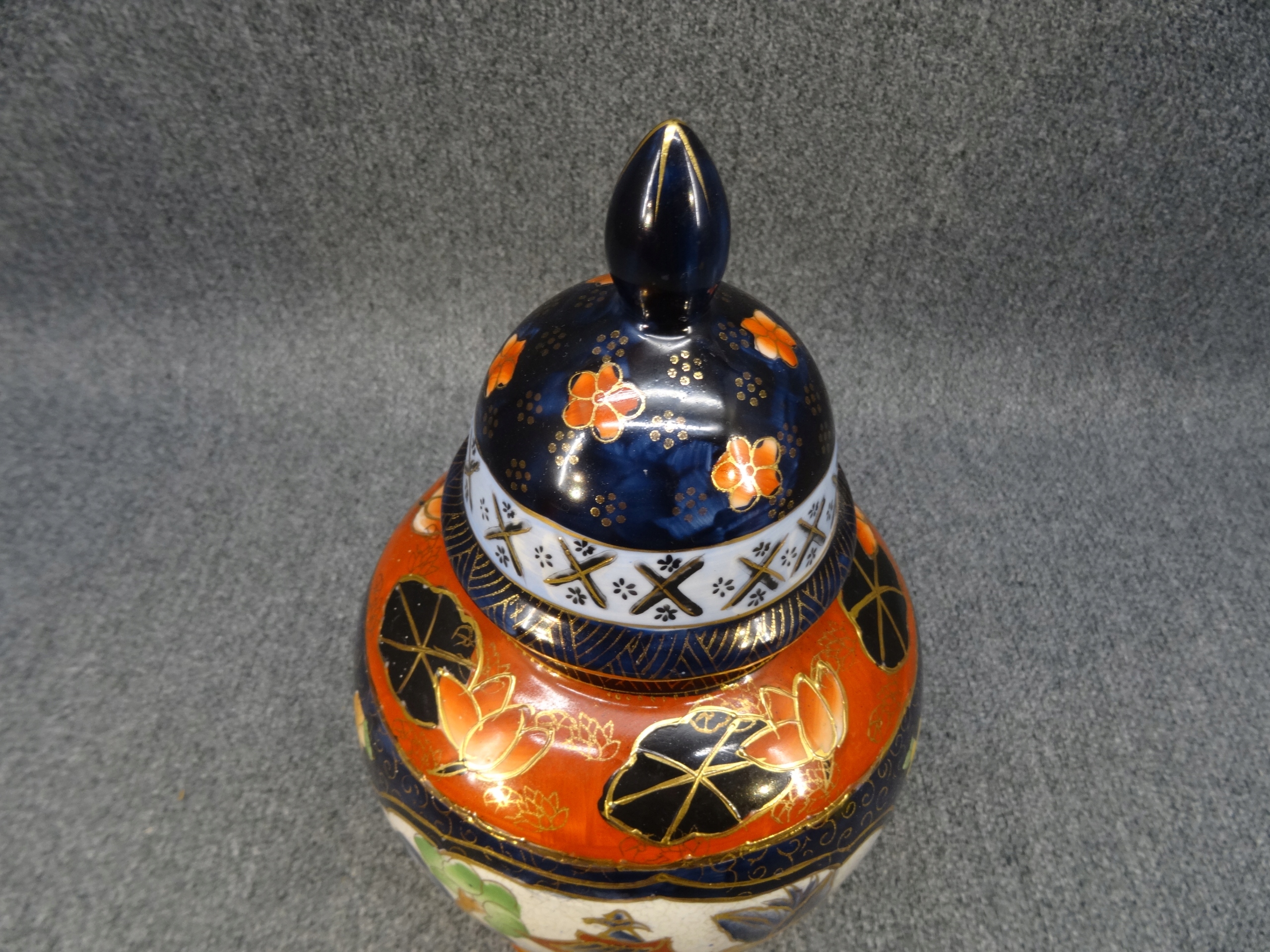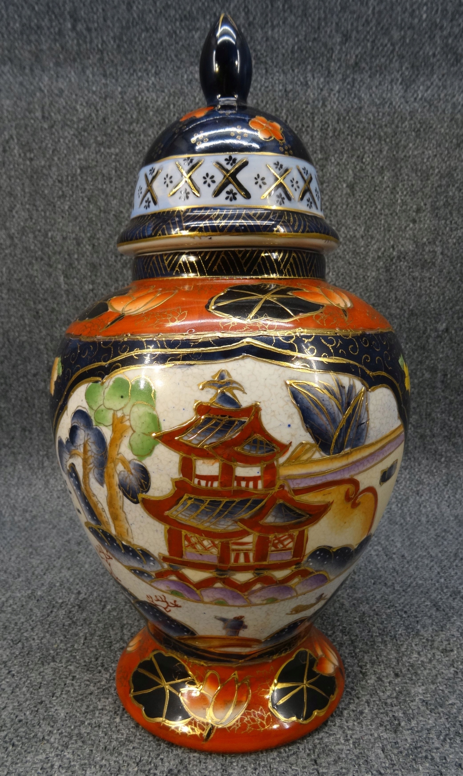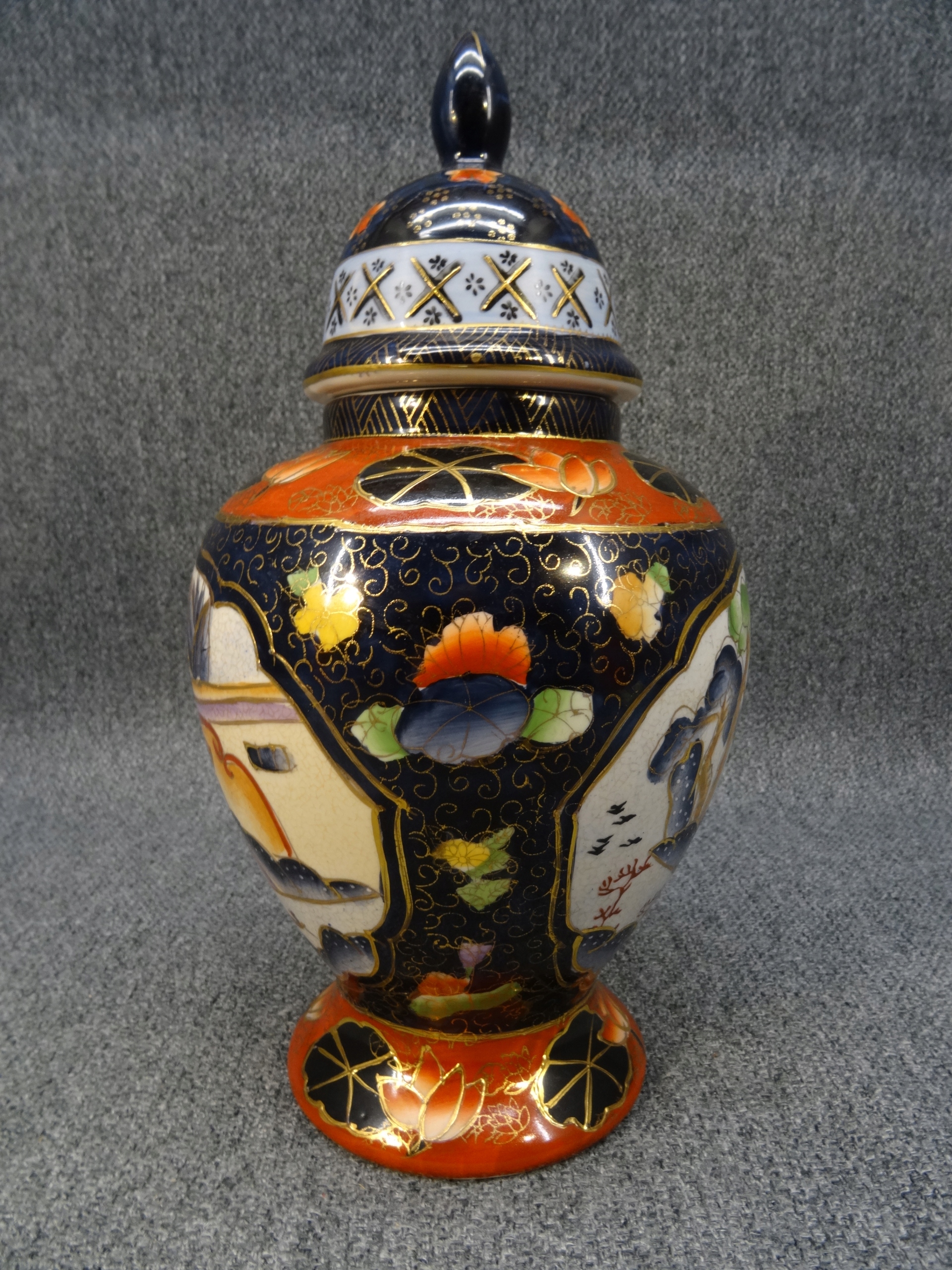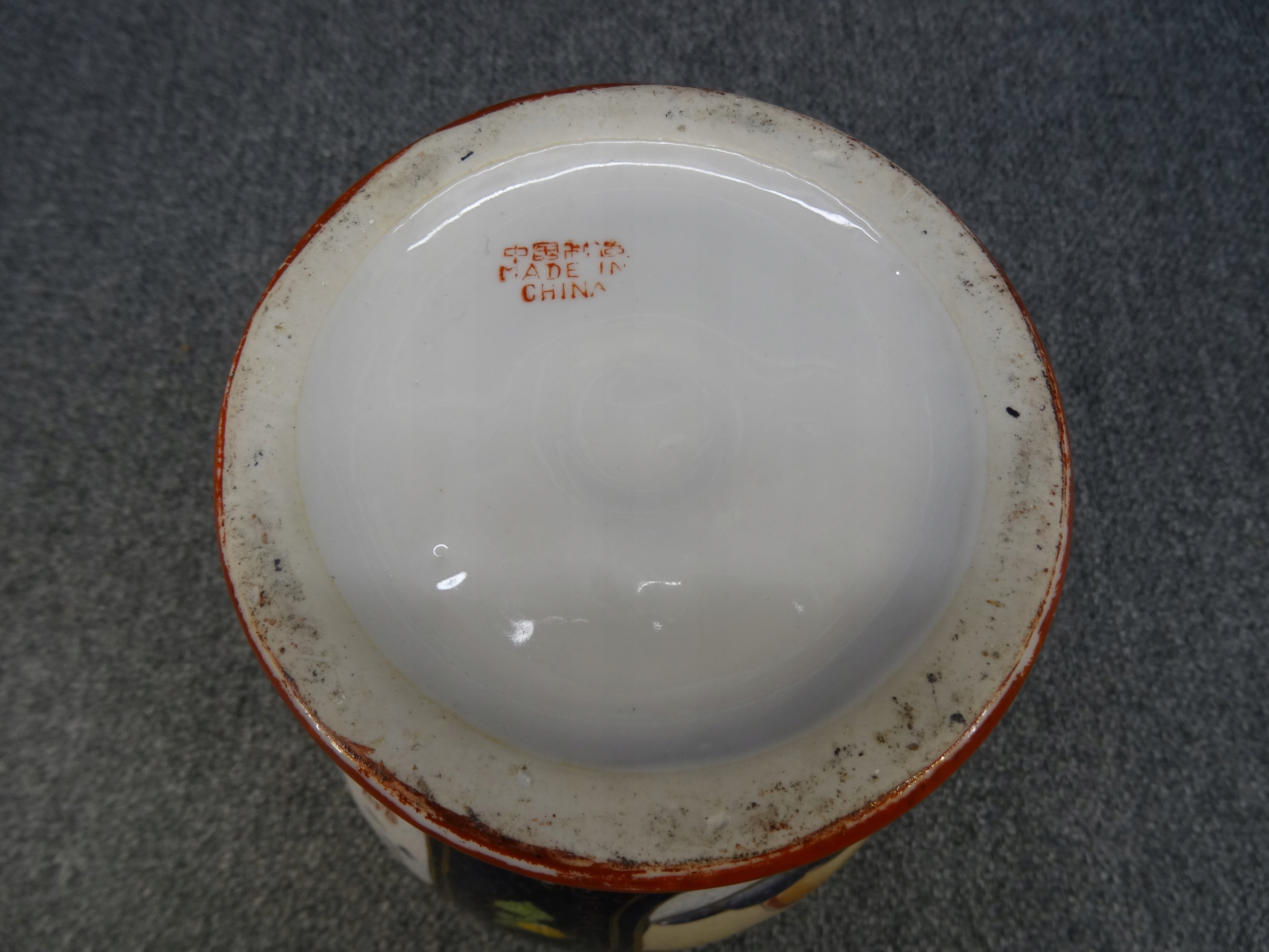 Фарфоровая китайская ваза с крышкой, расписанная вручную. Вместимость неизвестна.