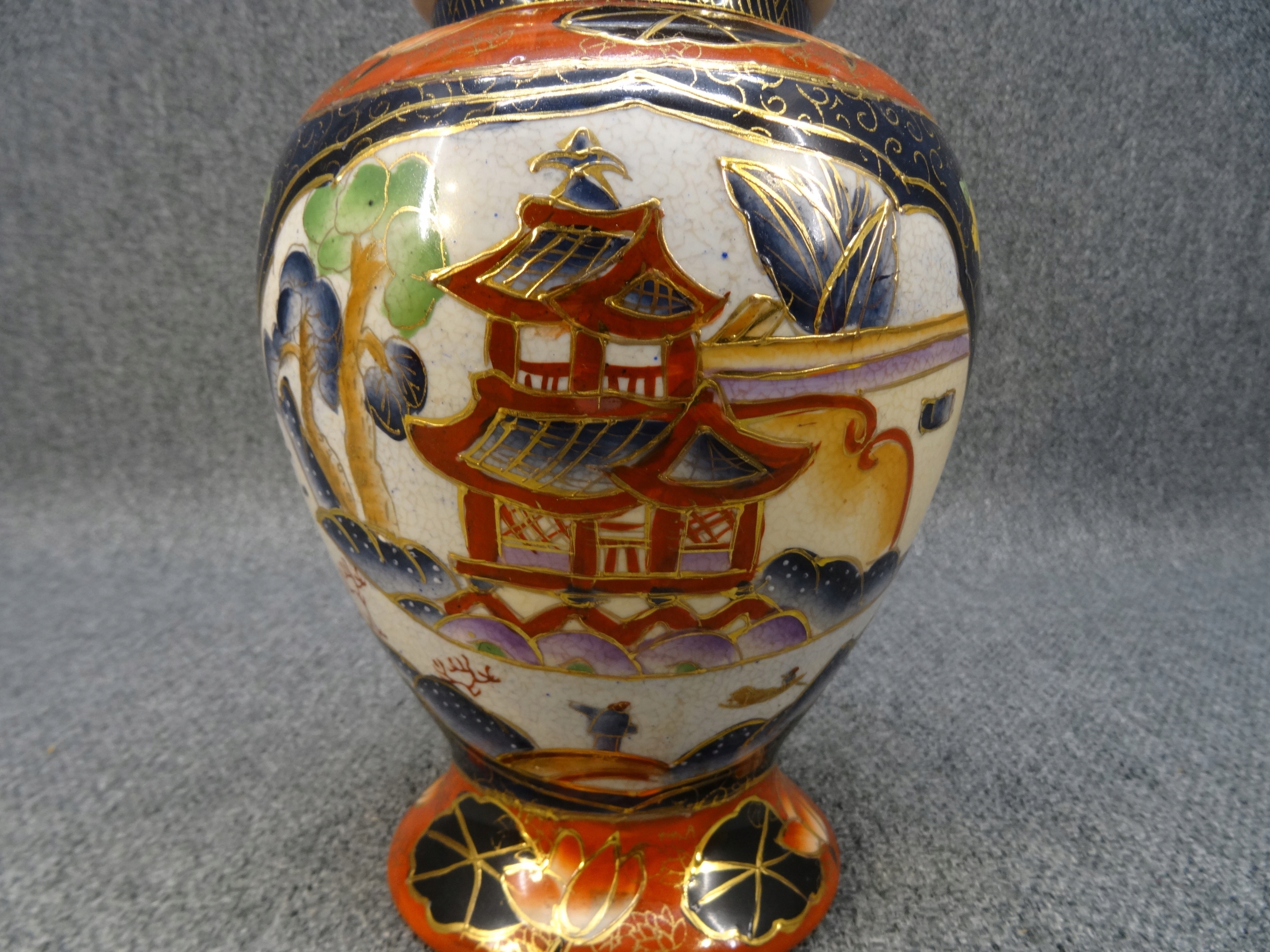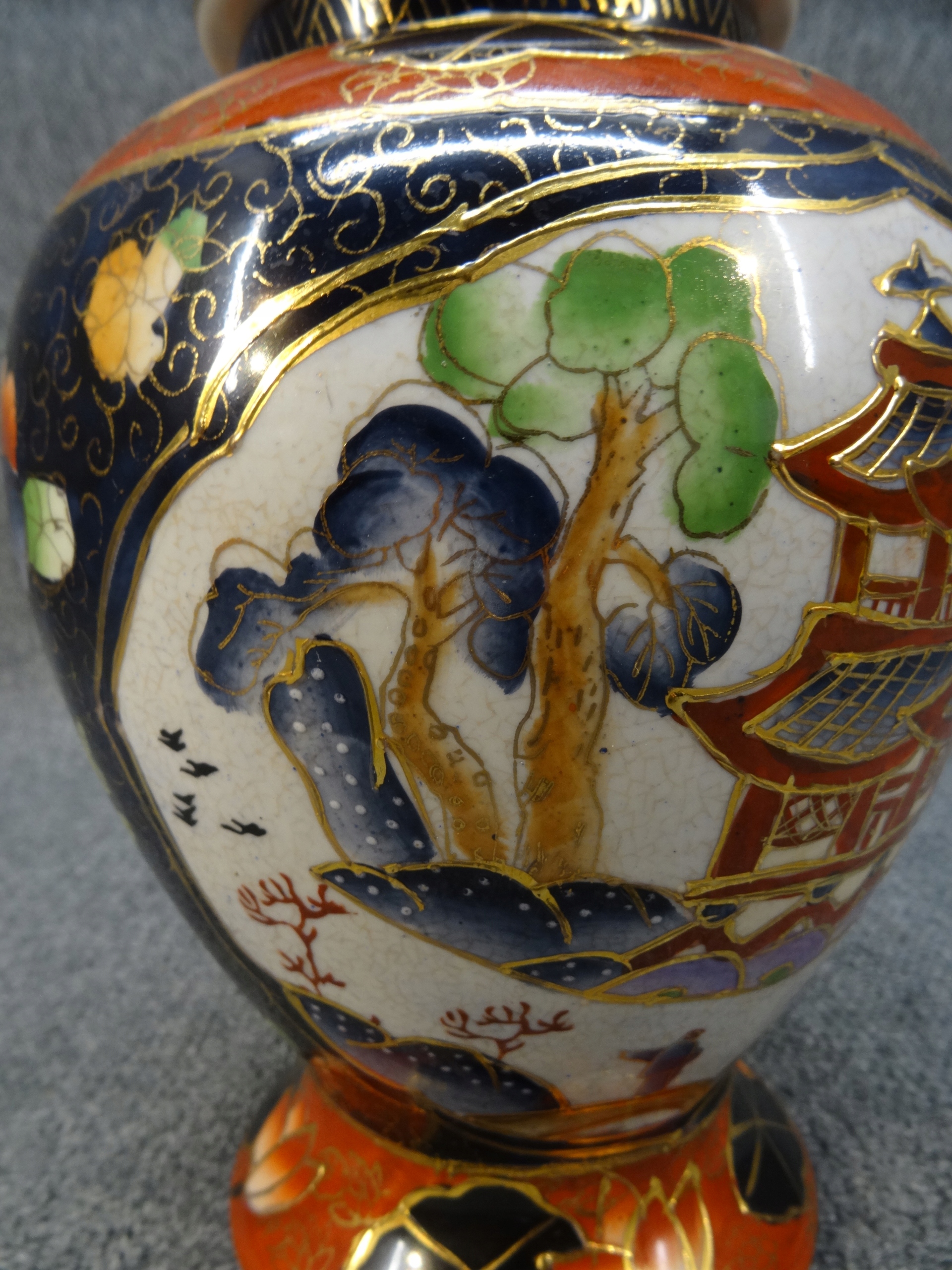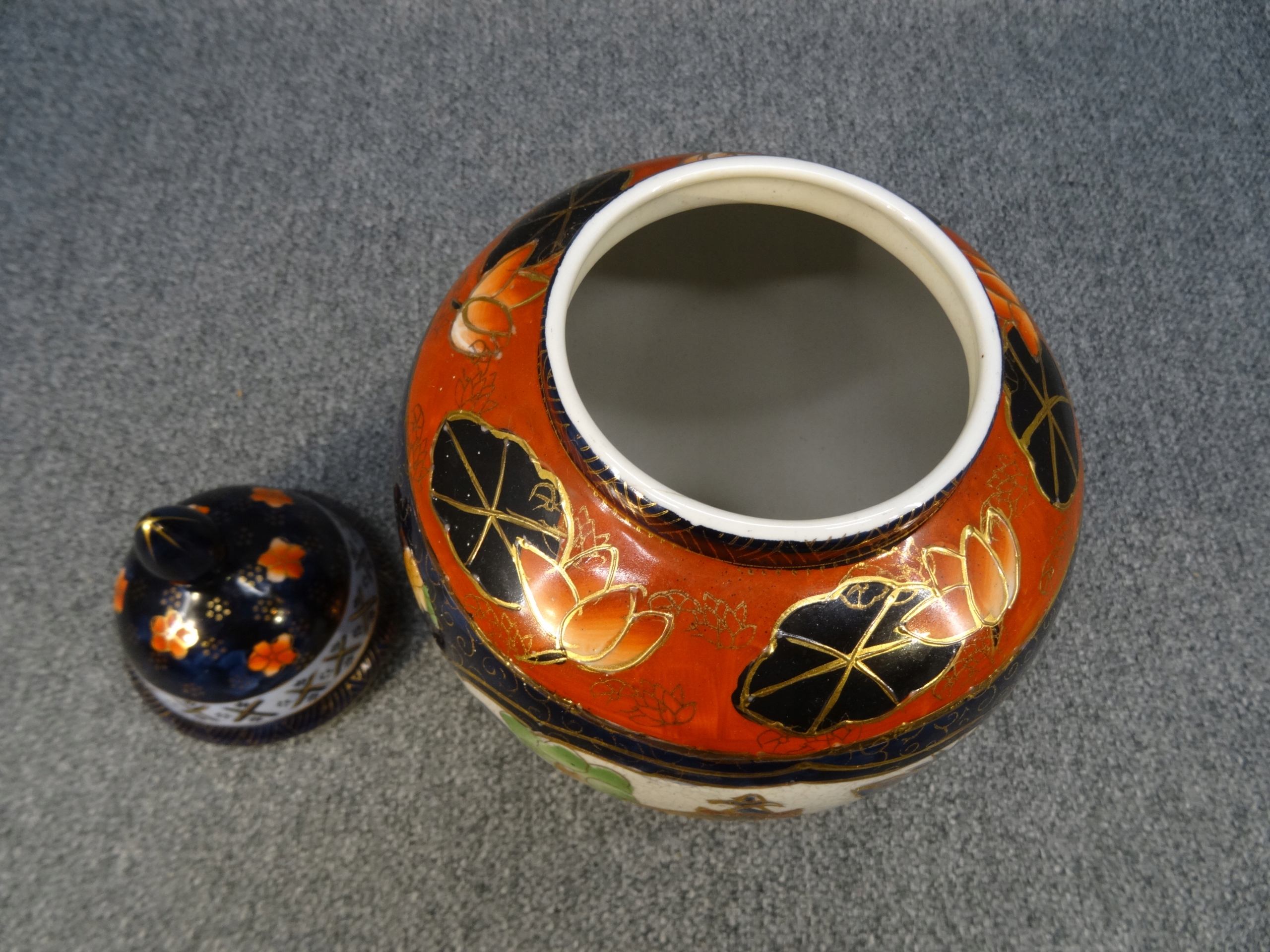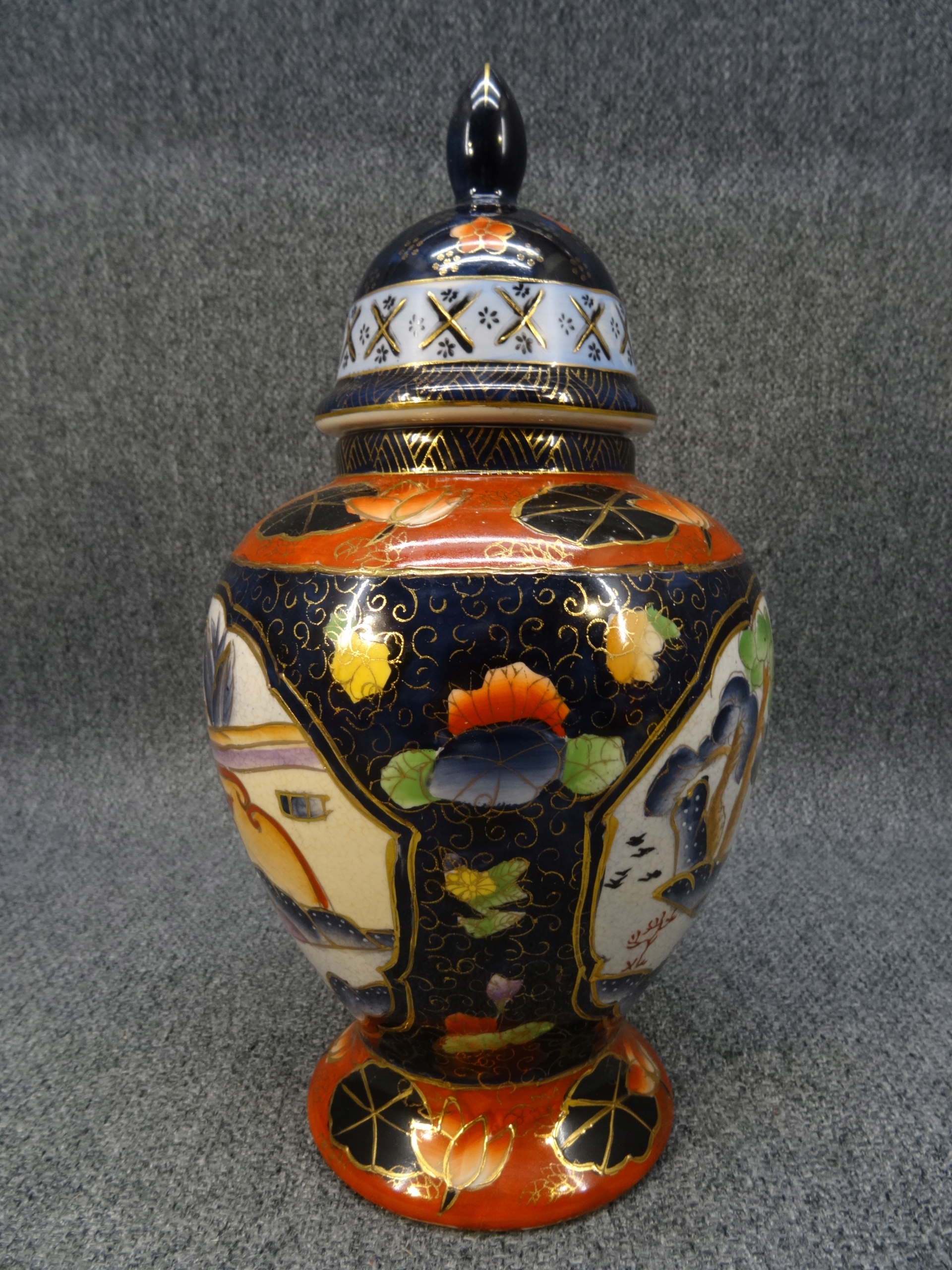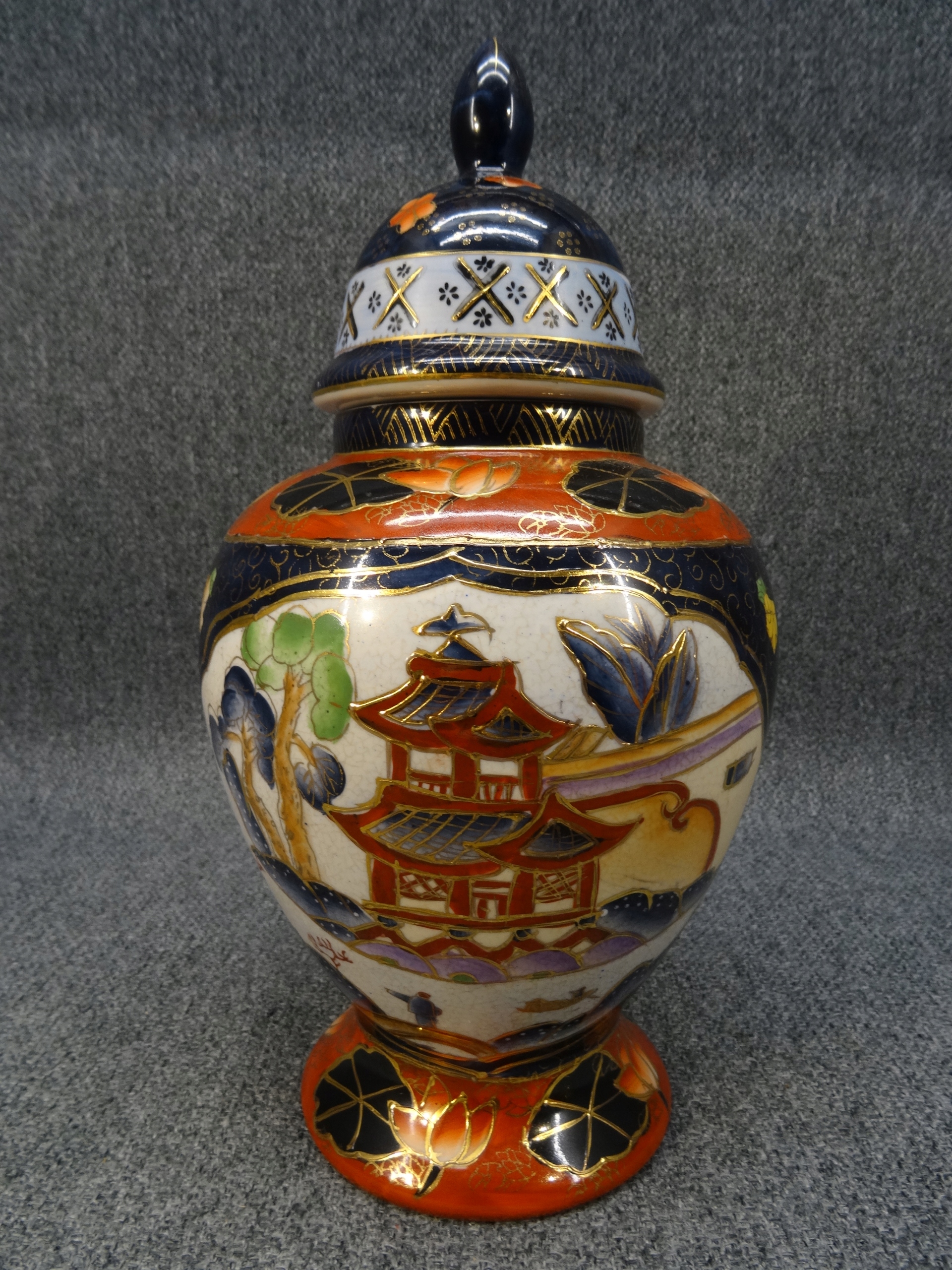 Фарфоровая китайская ваза с крышкой, расписанная вручную. Вместимость неизвестна.