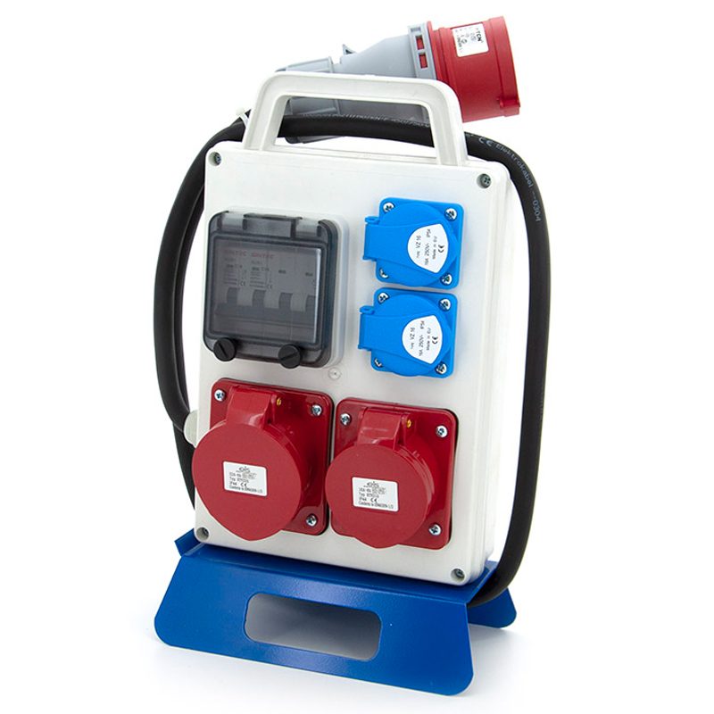 ЭРПРЗ - Переносные распределительные щиты с окном МАКСИМУМ 13 модулей. Возможные версии без окна – максимум 3 розетки и 4 розетки 230В. Распределительные щиты с ручкой для полевых работ - защищены, готовы к подключению к розетке в любом месте. В наличии версии с защитой, варианты со счетчиками. Они доступны на металлических подставках.