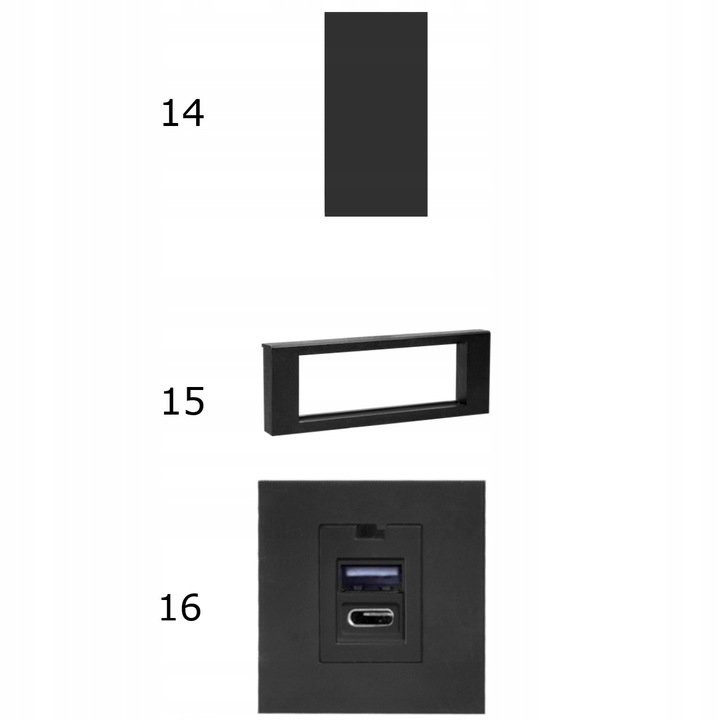 16 - OR-GM-9010/B/USBAC - NOEN 1x USB + 1xUSB C, двойной модульный порт 45x45 мм с зарядным устройством USB, 2,1 А, 5 В постоянного тока, черный
