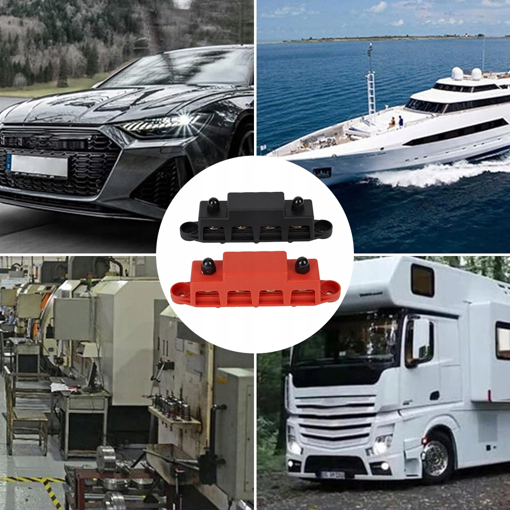-⬆️Черный автомобильный распределитель подключен к отрицательному полюсу, красный — к положительному полюсу; номинальный ток каждого винта 62,5А, номинальный ток всего электроблока 250А; Ток вспомогательного зажимного винта составляет 20А. максимальное напряжение 48 В постоянного тока