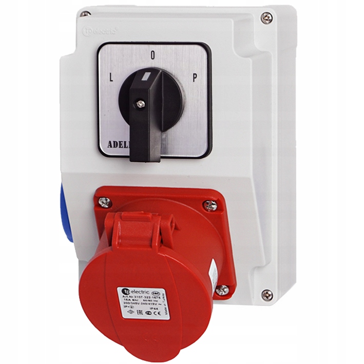 ОРИГИНАЛЬНЫЙ ЭЛЕКТРИЧЕСКИЙ РАСПРЕДЕЛИТЕЛЬНЫЙ ЩИТ БРЕНДА ADELID С РОЗЕТКОЙ 16А 5P, РОЗЕТКОЙ 230В И ВЫКЛЮЧАТЕЛЕМ L-0-P.