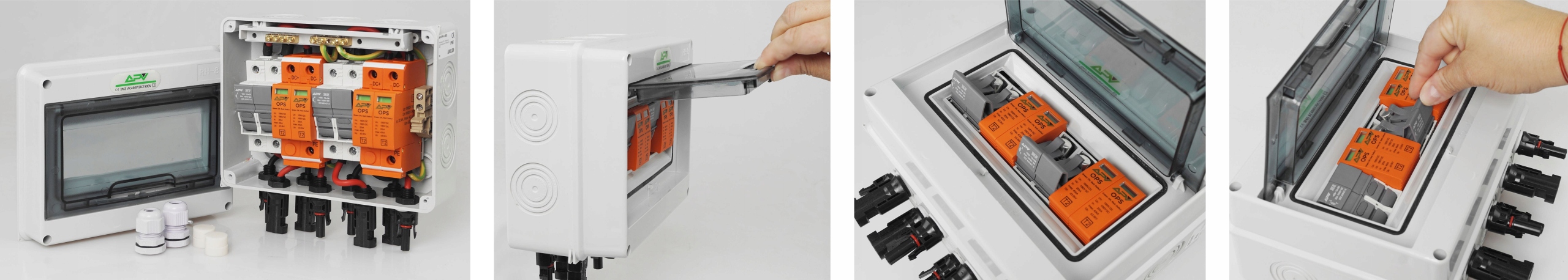 Комплект - фотоэлектрическое распределительное устройство поверхностного монтажа, 8 модулей, две цепочки, 1000В постоянного тока 32А IP65