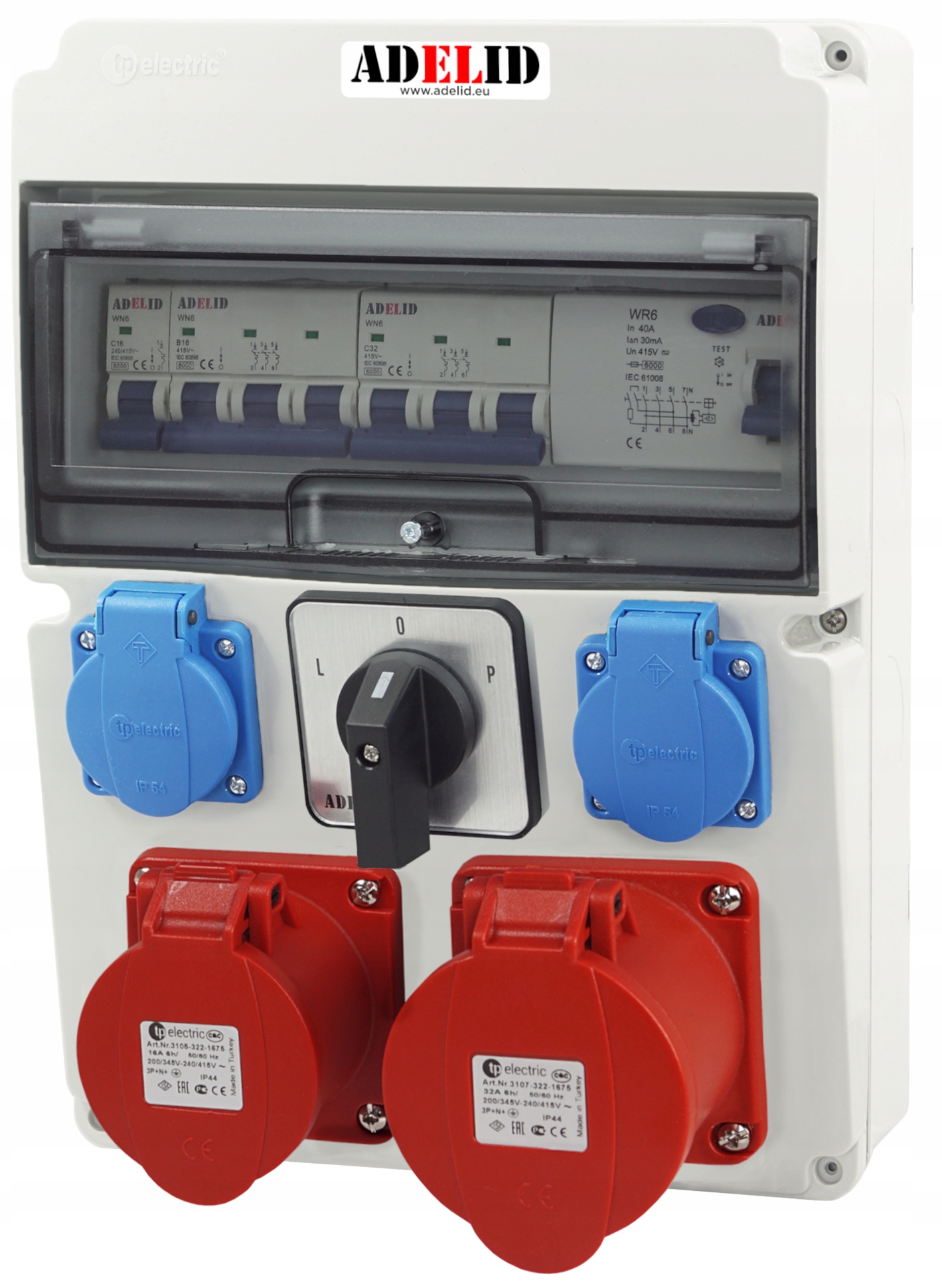 ОРИГИНАЛЬНЫЙ ЭЛЕКТРИЧЕСКИЙ РАСПРЕДЕЛИТЕЛЬНЫЙ ЩИТ, ЗАЩИЩЕННЫЙ, БРЕНДА ADELID, С РОЗЕТКАМИ, РОЗЕТКАМИ 230 В И ВЫКЛЮЧАТЕЛЕМ L0P.