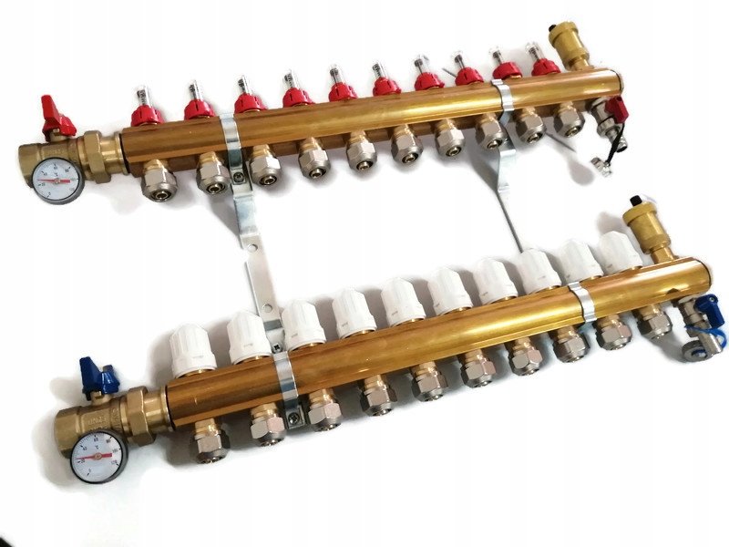 РАСПРЕДЕЛИТЕЛЬ ЛАТУННЫЙ, 5 СЕКЦИЙ ПОЛЬСКОГО ПРОИЗВОДИТЕЛЯ (СЕРТИФИКАТ), МАРКА CW617N ДЛЯ ПИТЬЕВОЙ ВОДЫ + 1-ДЮЙМОВЫЕ КЛАПАНЫ (ТЕРМОМЕТРЫ) + ПЕРЕХОДНИКИ ДЛЯ ТРУБЫ PEX 16 + АВТОМАТИЧЕСКИЕ ВОЗДУХООТВОДчики.